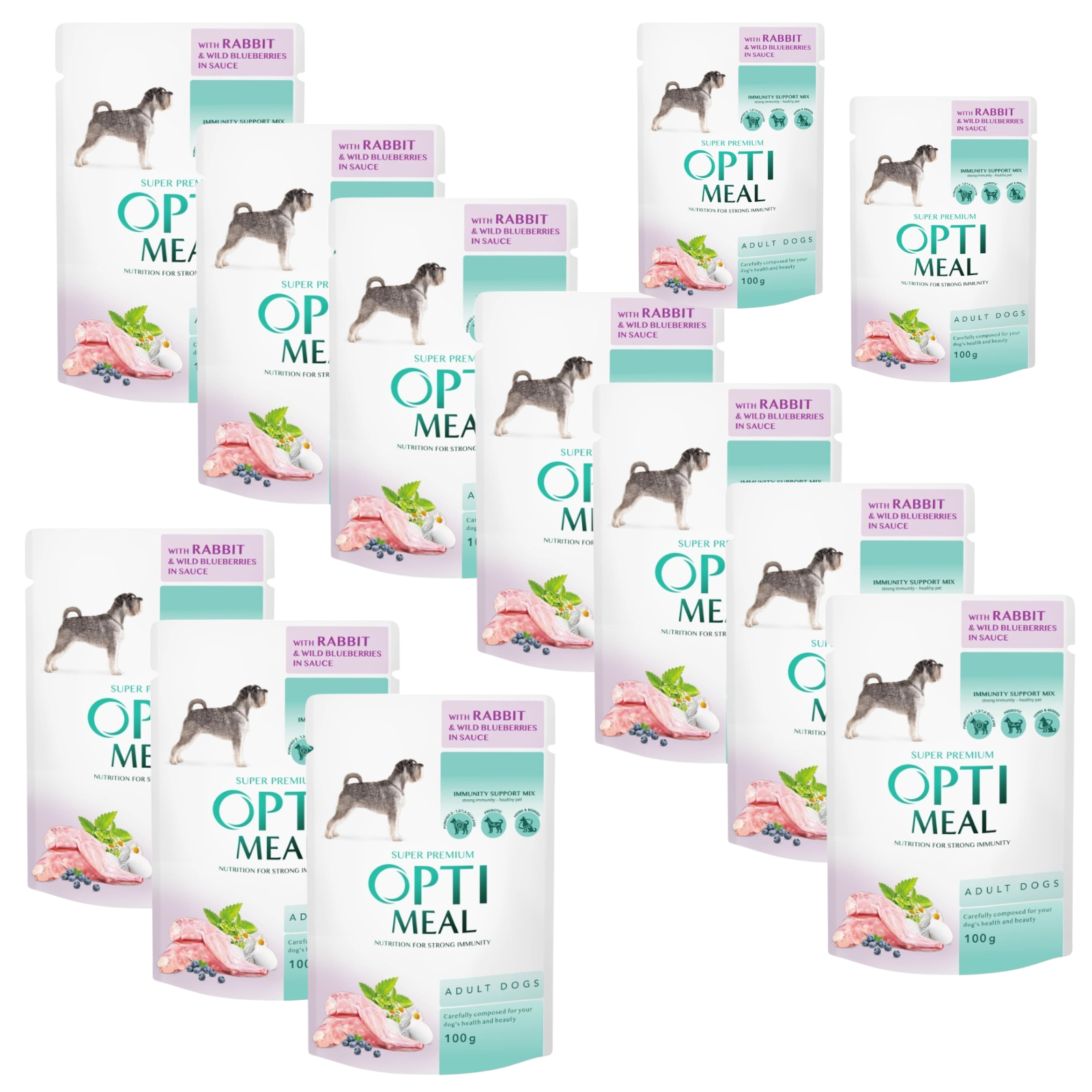 OptiMeal Premium Saszetka Karma Mokra dla Psów Królik z Jagodami ZESTAW 12x100g