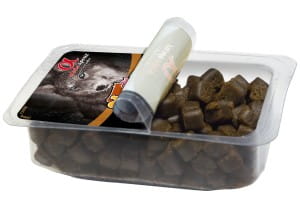 - Karma zamknięta hermetycznie w opakowaniu 200g-idealna do zabrania na spacer czy trening z psem.