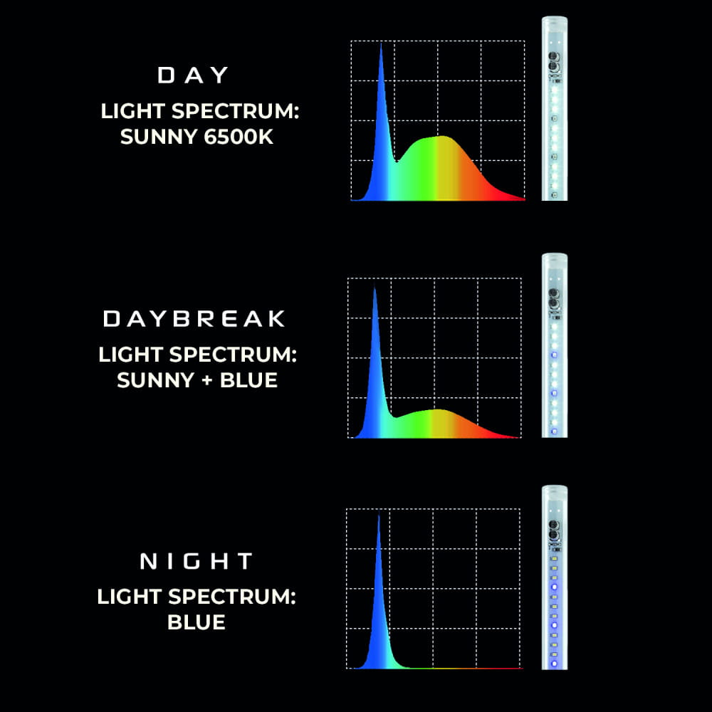 Oświetlenie w zestawach CLASSIC BOX LT stanowią nowoczesne, energooszczędne moduły oświetleniowe LEDDY TUBE DAY&NIGHT 10W emitujące mocne w 3 trybach: dziennym, mieszanym i nocnym. Wiernie oddaje ono naturalne kolory roślin i ryb oraz zapewnia prawidłowy wzrost roślin.