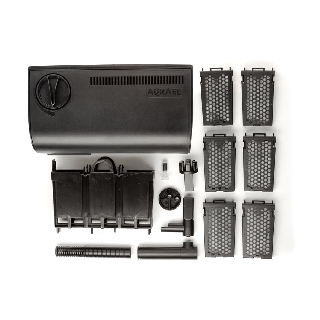 Pojemny zbiornik daje dowolność wykorzystania. Możesz część zapełnić odpowiednio dociętą, wybraną gąbką oraz mediami chemicznymi, układając je warstwowo według własnego uznania. Pozostałą powierzchnię dopełnij kartridżami, które dzięki wygodnym, plastikowym osłonkom wyciągniesz jednym ruchem. W kartridżach możesz zastosować np. filtr węglowy, który po okresie absorbcji prosto usuniesz, bez naruszania pozostałych substancji.