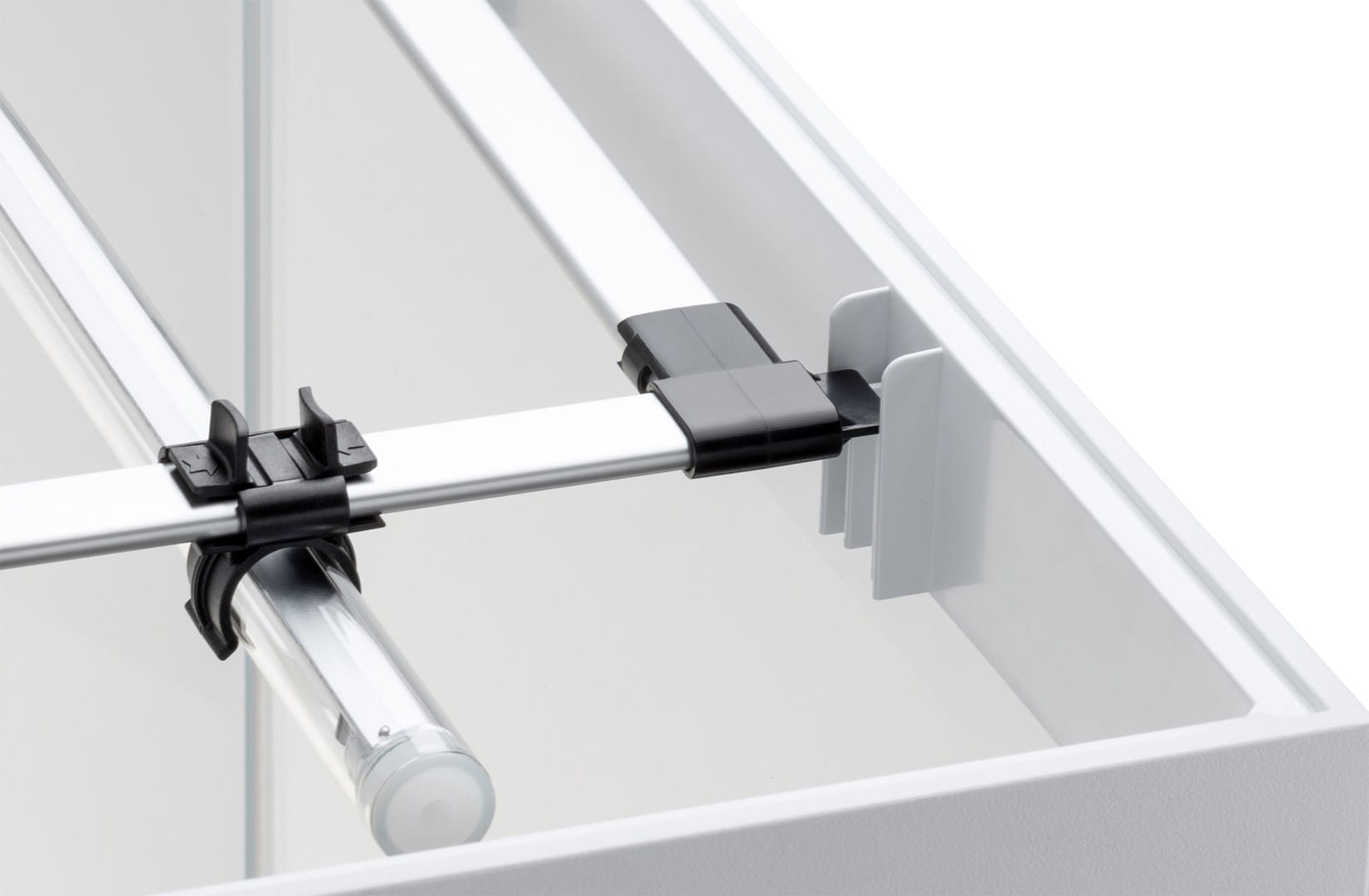 Ale to nie koniec możliwych modyfikacji. Szyny pozwalają na wygodną zmianę miejsca modułów oświetleniowych, dzięki czemu można równomiernie oświetlić całe akwarium lub tylko jego wybraną część.