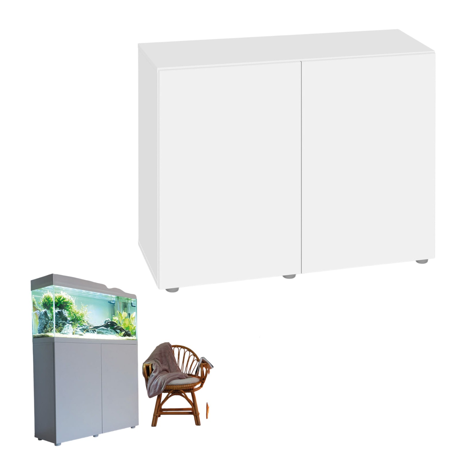 Solidna konstrukcja szafki, wykonanej z laminowanej płyty wiórowej o grubości 18 mm, zapewnia pełne bezpieczeństwo użytkowania. Dzięki regulowanym nóżkom, można ją dokładnie i wygodnie wypoziomować. Jest to szczególnie istotne przy nierównym podłożu. Niewątpliwym atutem szafki jest jej wysokość – aż 80 cm. Takie rozwiązanie to więcej miejsca na duży filtr zewnętrzny czy instalację CO2. To również wygoda obserwacji podwodnego świata i podziwiania aranżacji w zbiorniku.