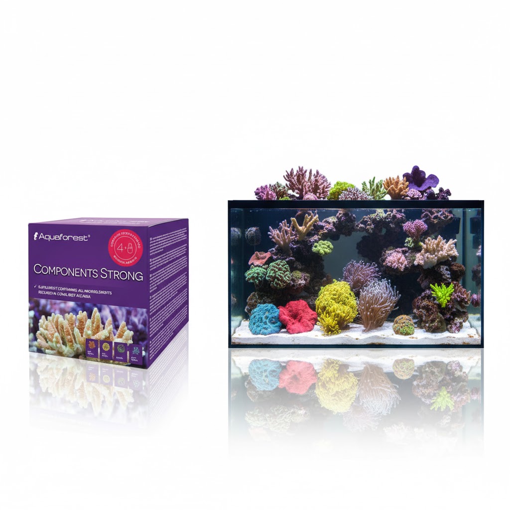 Components Strong zawiera skoncentrowane mikroelementy przeznaczone do stosowania w akwariach rafowych. Components Strong w połączeniu z Calcium, Magnesium, KH Buffer i Reef Mineral Salt stanowią kompletny zestaw przeznaczony do utrzymania akwarium rafowego metodą proponowaną przez H. W. Ballinga, dlatego produkty te należy stosować równolegle. Z uwagi na to, że mikroelementy w akwarium konsumowane są w odpowiedniej proporcji z makroelementami, stężenia Components Strong zostały opracowane w oparciu o pozostałe wartości. Jedynie stosowanie całej gamy produktów Aquaforest zapewnia skuteczność i gwarantuje utrzymanie równowagi chemicznej w akwarium. Ilość podawanych mikroelementów jest uzależniona od indywidualnego zapotrzebowania akwarium na magnez i wapń.