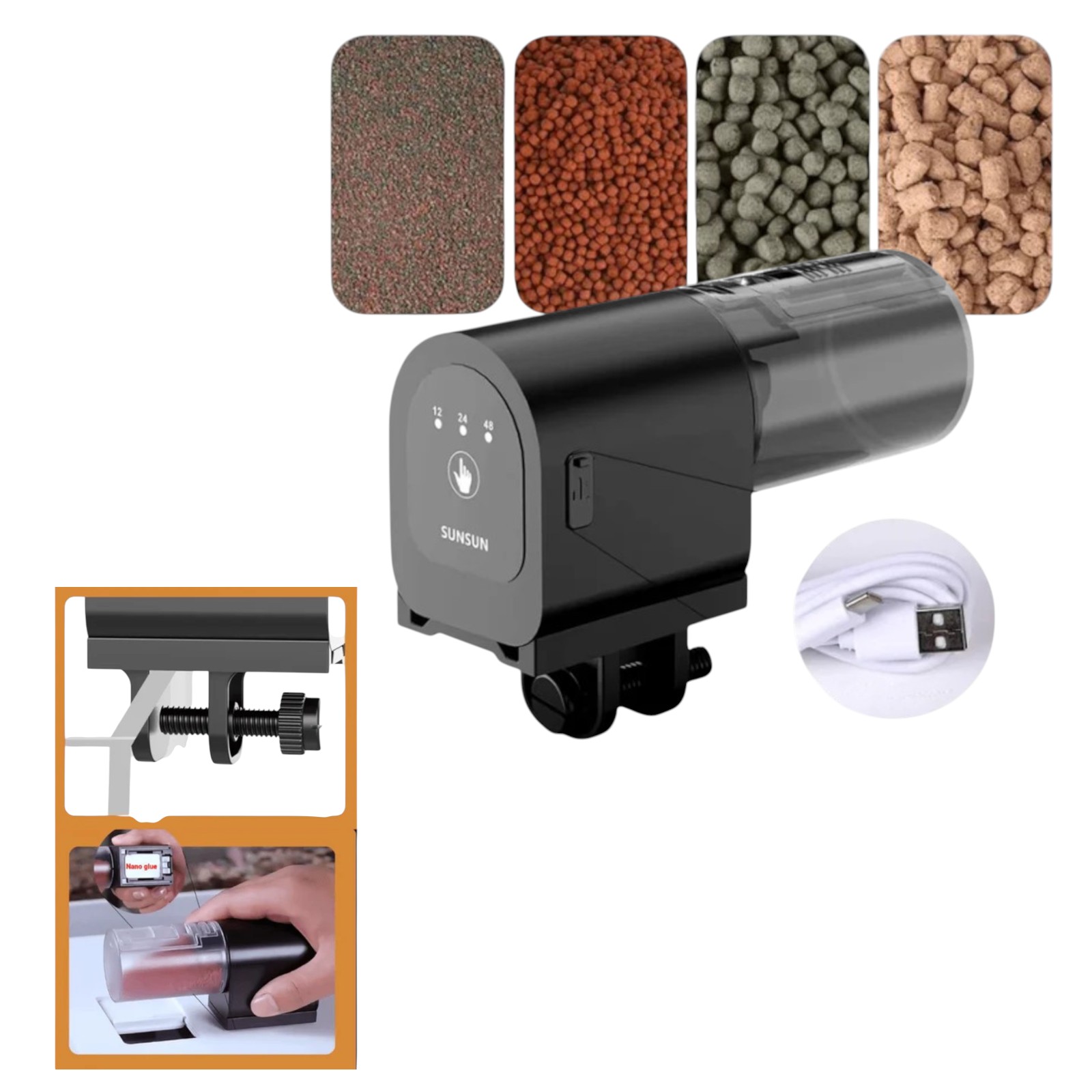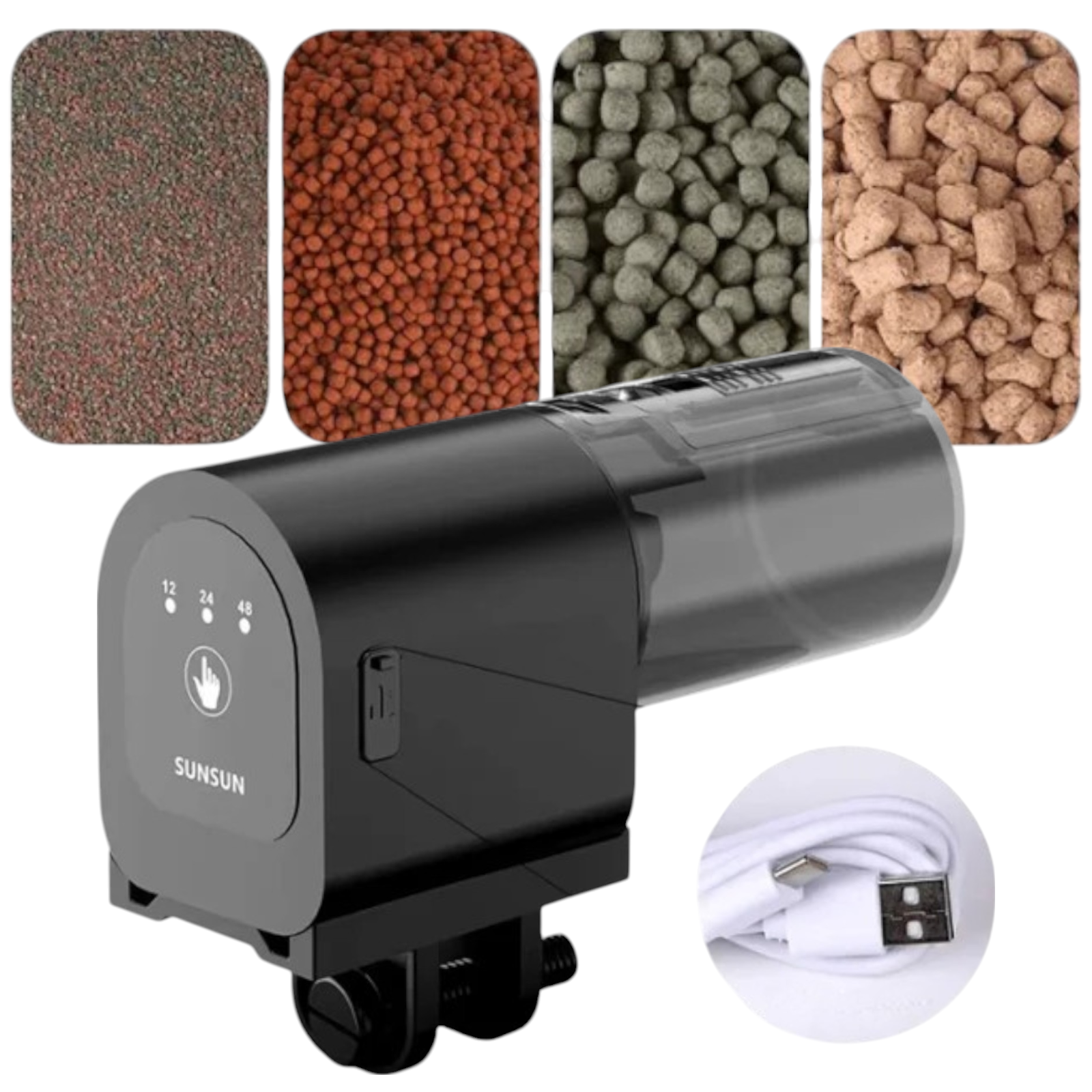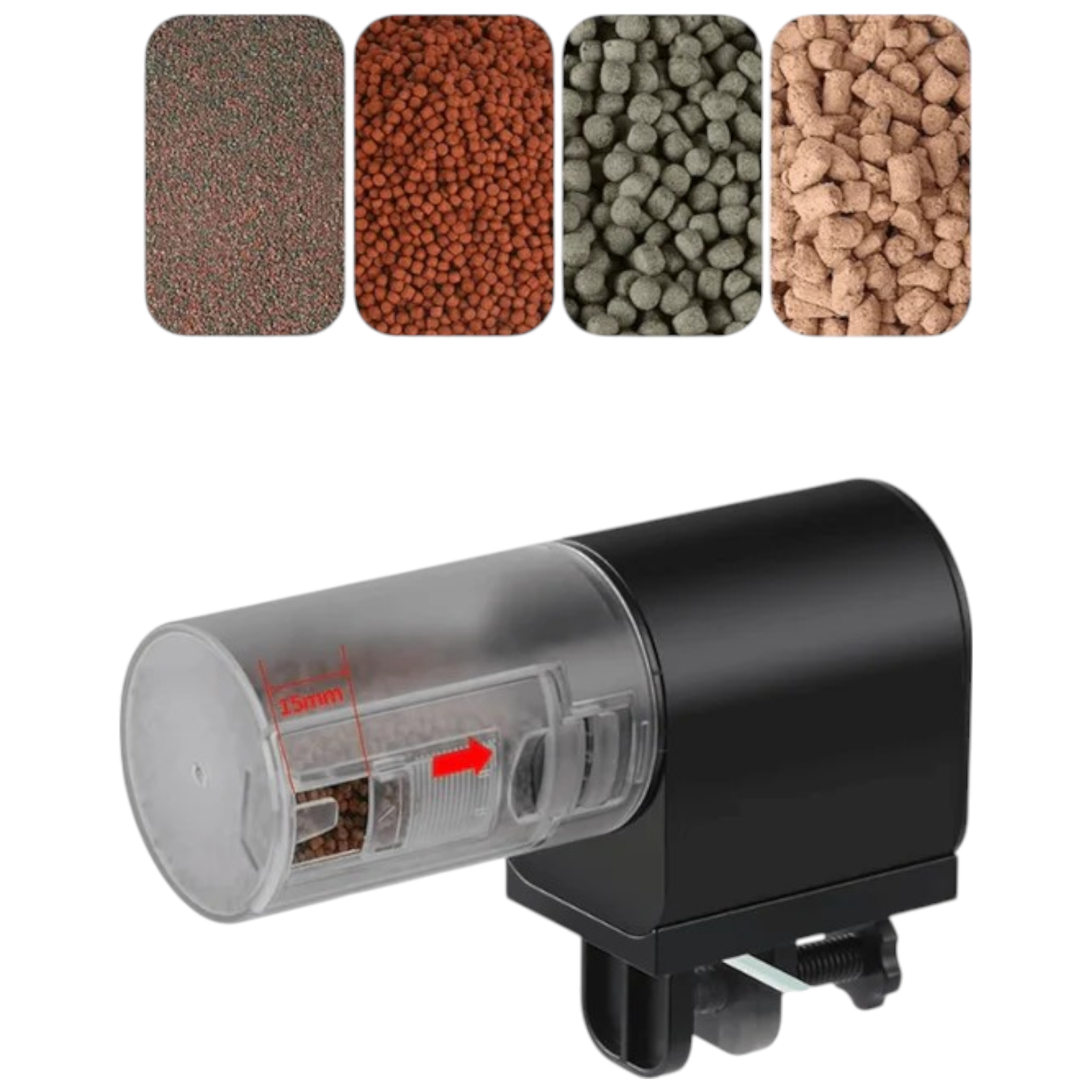 Karmnik automatyczny, który może podawać pokarm do co 12 lub co 24 lub 48 godzin. Dawki pokarmu bardzo łatwo można regulować. Automatyczny karmnik idealnie nadaje się do karmienia ryb podczas naszej nieobecności w domu, podczas urlopu i wakacji.