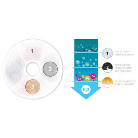 Zestaw składa się z fontanny oraz z jednego wymiennego filtra o podwójnej funkcji :
