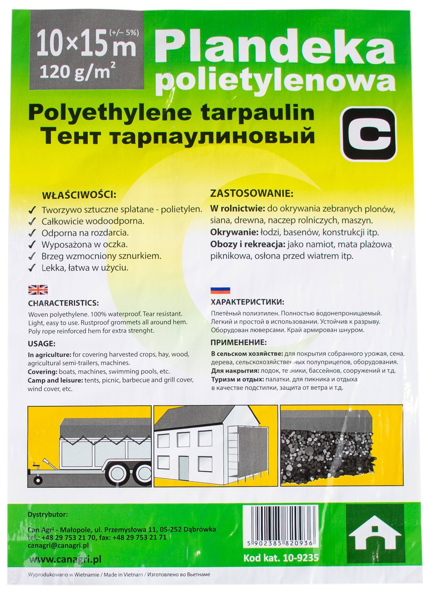 Plandeka marki Can Agri jest wykonana z wytrzymałego polietylenu, który zapewni jej niską masę, łatwą obsługę i czyszczenie.