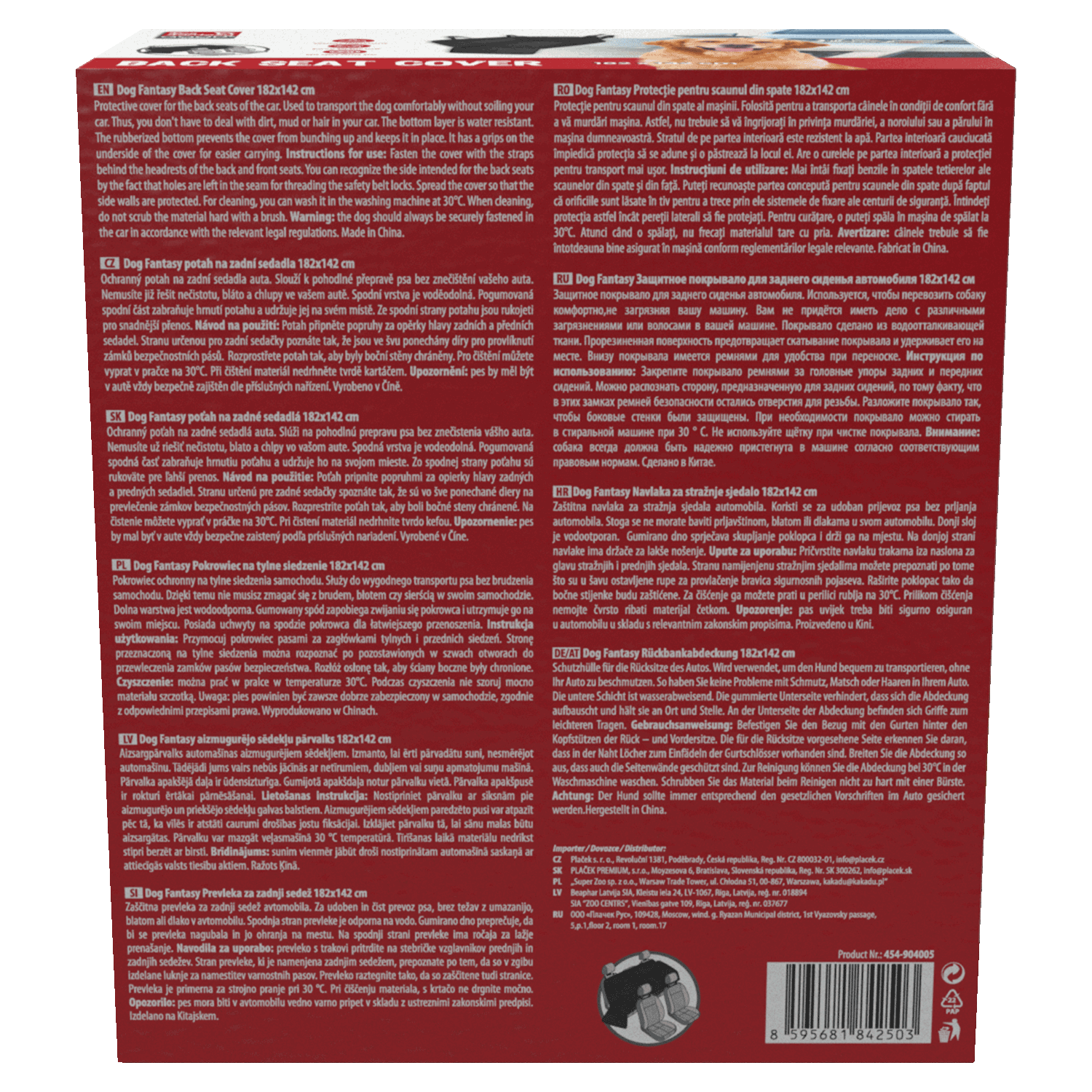 Oferowana mata ochronna do samochodu została skonstruowana z nieprzemakalnego materiału. Posiada ona cztery taśmy nylonowe, wytrzymałe na uszkodzenia, a także odporne na szarpnięcia i przetarcia, dzięki czemu pies może spokojnie podróżować. Mocowane są one do zagłówków za pomocą lekkich klamr typu Duraflex – zapięcia ułatwiające zakładanie, jak i ściąganie maty. Ponadto mata została wyposażona w otwory, które ułatwiają wpięcie pasa bezpieczeństwa do zamka, zwiększając tym samym bezpieczeństwo wszystkich podróżujących.