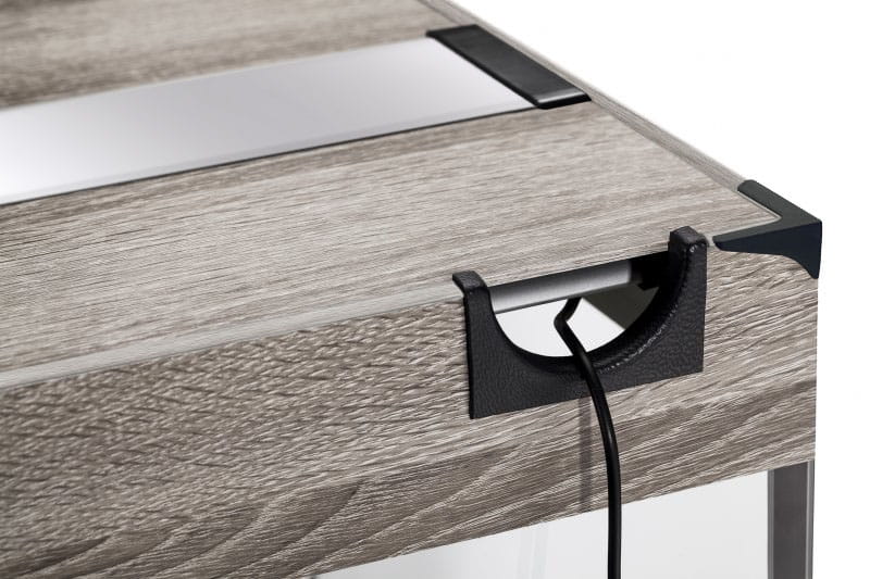 Dyskretne otwory przelotowe na tylnej ścianie akwarium umożliwiają wygodne podłączenie niezbędnego osprzętu takiego jak oświetlenie, filtr czy grzałka.