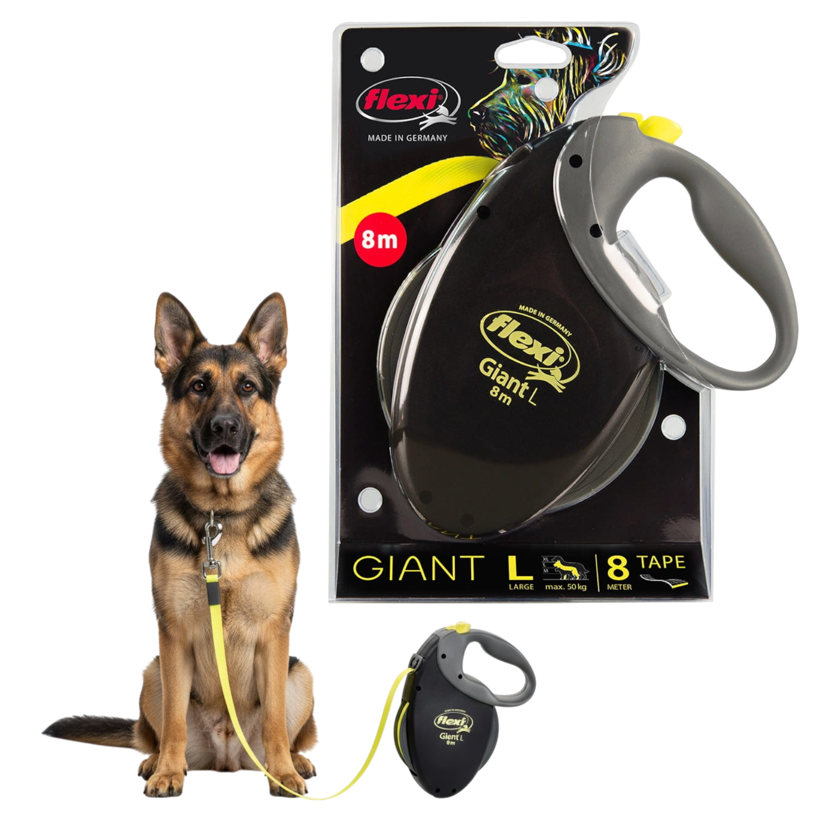 Oryginalna automatyczna smycz FLEXI posiada jedyny w swoim rodzaju, opatentowany, zaawansowany technicznie system sprężynowy i wiele innych chronionych innowacji. Nowatorskie rozwiązania techniczne, komfortowa obsługa, wysokiej jakości materiały i precyzyjne wykonanie to cechy, które składają się na perfekcję tej smyczy. Smycz FLEXI wyróżnia jakość, funkcjonalność, bezpieczeństwo i nowoczesny design. Rączka z neonowymi elementami i odblaskowa taśma smyczy FLEXI GIANT NEON zwiększa bezpieczeństwo podczas spacerów o zmroku i w nocy. Smycz odporna na zabrudzenia, dzięki specjalnemu mechanizmowi zwijania nie ciągnie się po ziemi. Rączka smyczy wykonana jest z antyalergicznego materiału uniemożliwiającego wyślizgnięcie się z dłoni.