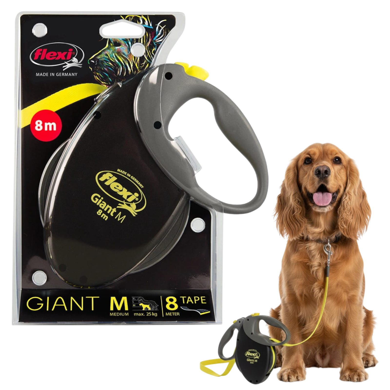 Oryginalna automatyczna smycz FLEXI posiada jedyny w swoim rodzaju, opatentowany, zaawansowany technicznie system sprężynowy i wiele innych chronionych innowacji. Nowatorskie rozwiązania techniczne, komfortowa obsługa, wysokiej jakości materiały i precyzyjne wykonanie to cechy, które składają się na perfekcję tej smyczy. Smycz FLEXI wyróżnia jakość, funkcjonalność, bezpieczeństwo i nowoczesny design. Rączka z neonowymi elementami i odblaskowa taśma smyczy FLEXI GIANT NEON zwiększa bezpieczeństwo podczas spacerów o zmroku i w nocy. Smycz odporna na zabrudzenia, dzięki specjalnemu mechanizmowi zwijania nie ciągnie się po ziemi. Rączka smyczy wykonana jest z antyalergicznego materiału uniemożliwiającego wyślizgnięcie się z dłoni.
