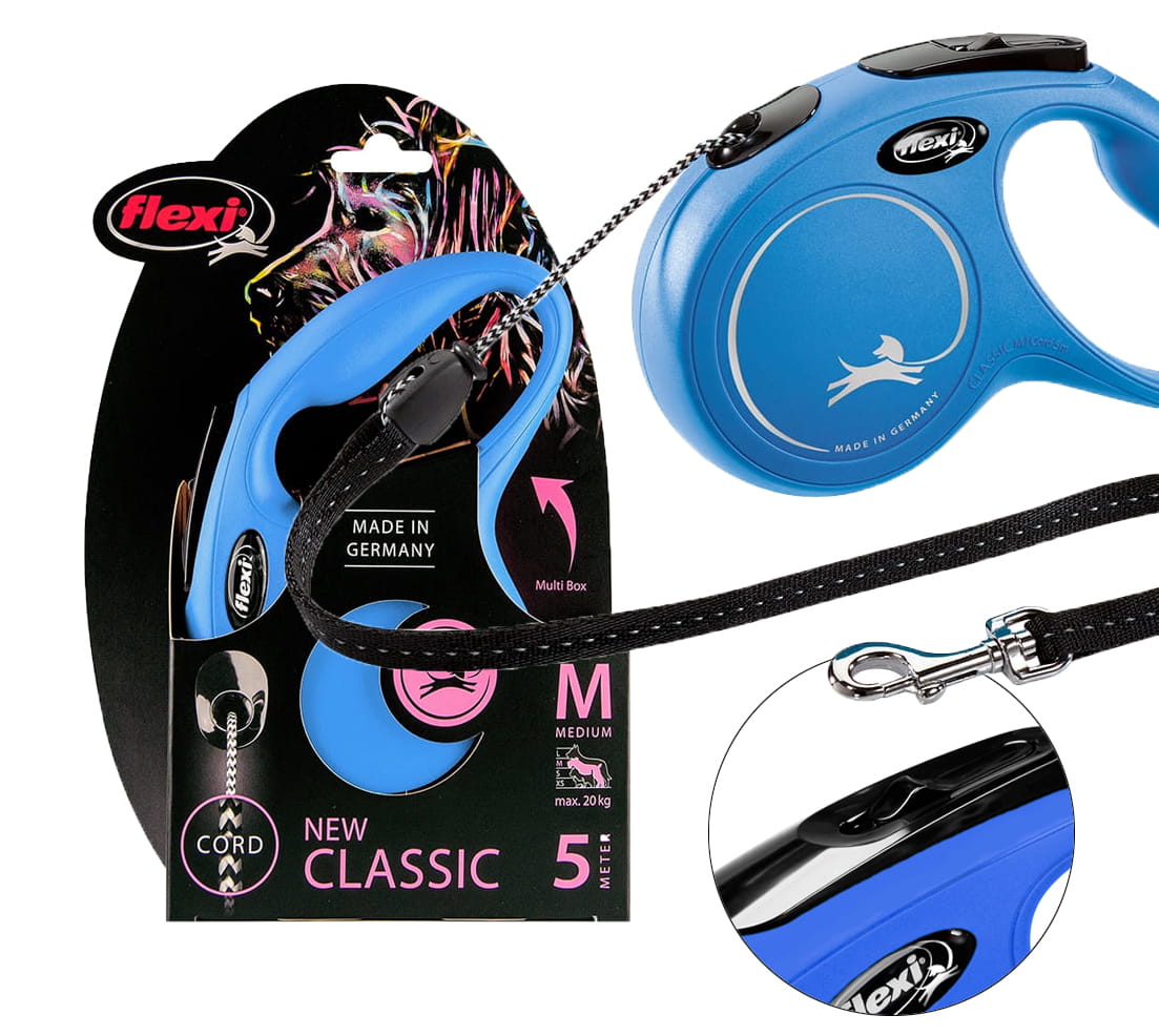 FLEXI Smycz automatyczna NEW CLASSIC linka M 5m do 20kg NIEBIESKA