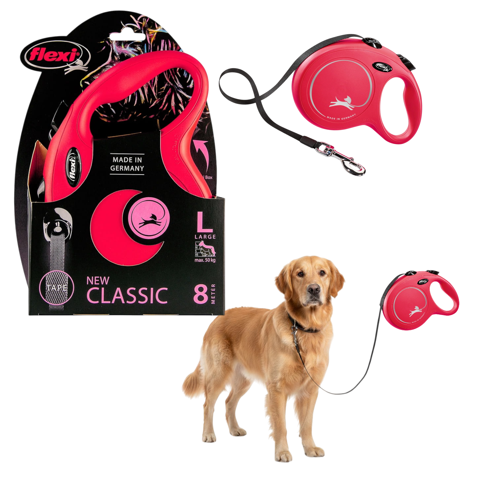 FLEXI Smycz automatyczna NEW CLASSIC taśma L 8m do 50kg CZERWONA