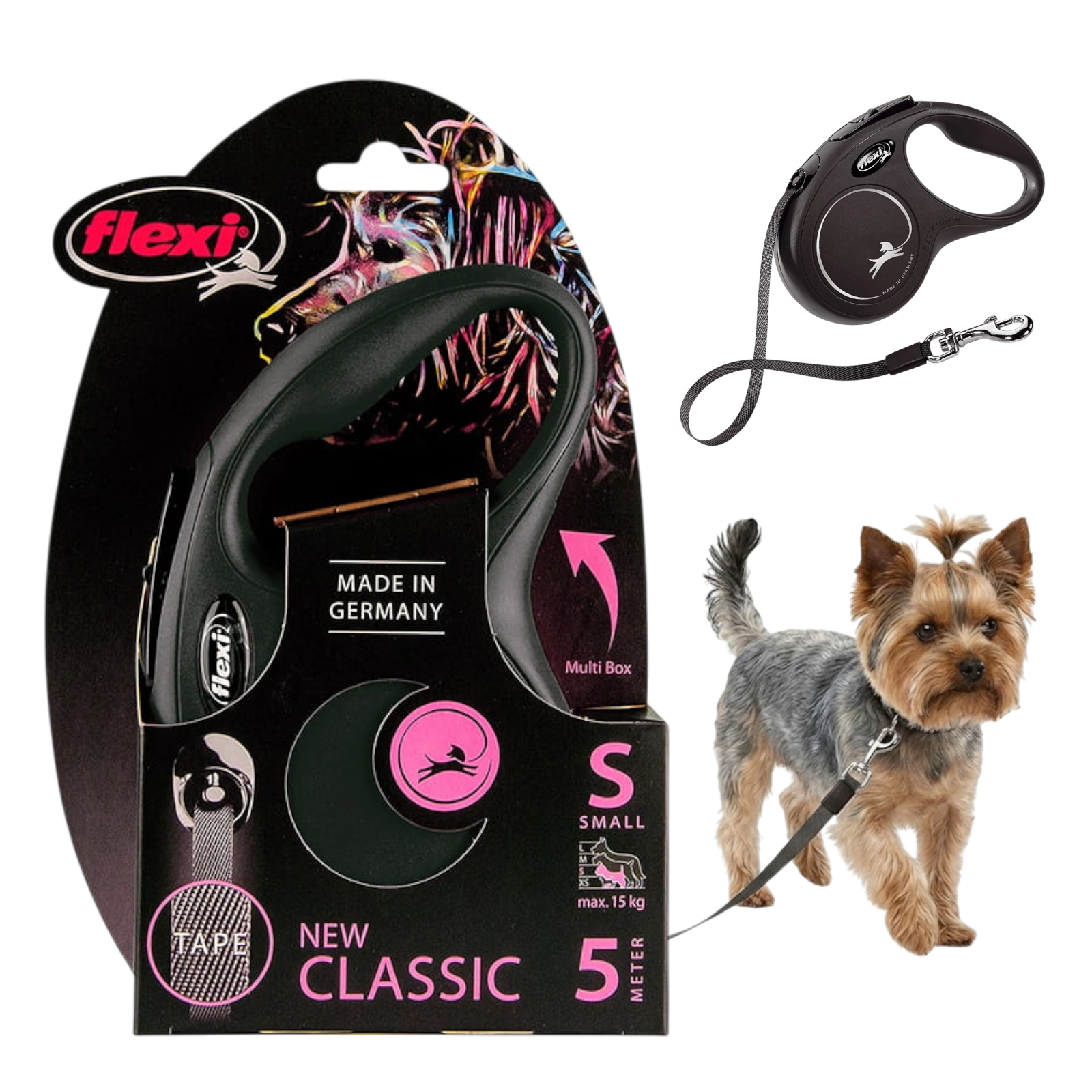 FLEXI Smycz automatyczna NEW CLASSIC taśma S 5m do 15kg CZARNA