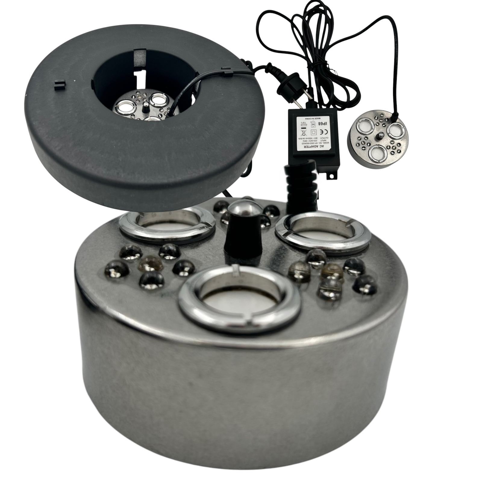 Zamgławiacz ultradźwiękowy z wielokolorowy diodami LED (ultradźwiękowy generator pary wodnej) do fontann, aranżacji, dekoracji itp.