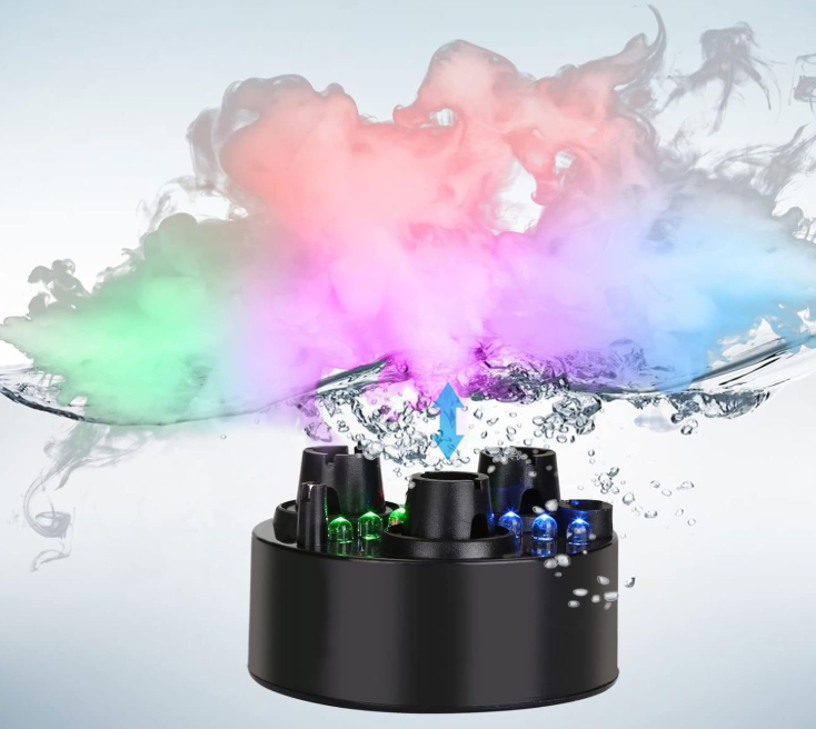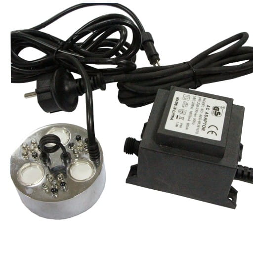 Kolorowe, zmieniające co chwila barwę diody LED nadają bajkowy efekt działaniu zamgławiacza. Fogger idealnie nadaje się do przydomowych stawów i oczek wodnych. Wytwarzana zimna mgła długo unosi się po powierzchni wody.