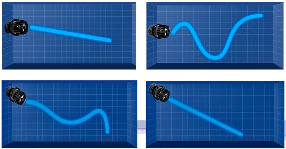 M3: tryb falowania, pompa płynnie zmienia swoją wydajność od 30% do 100% na wzór przebiegu sinusoidy. Wytwarzają się naturalnie wyglądające fale.