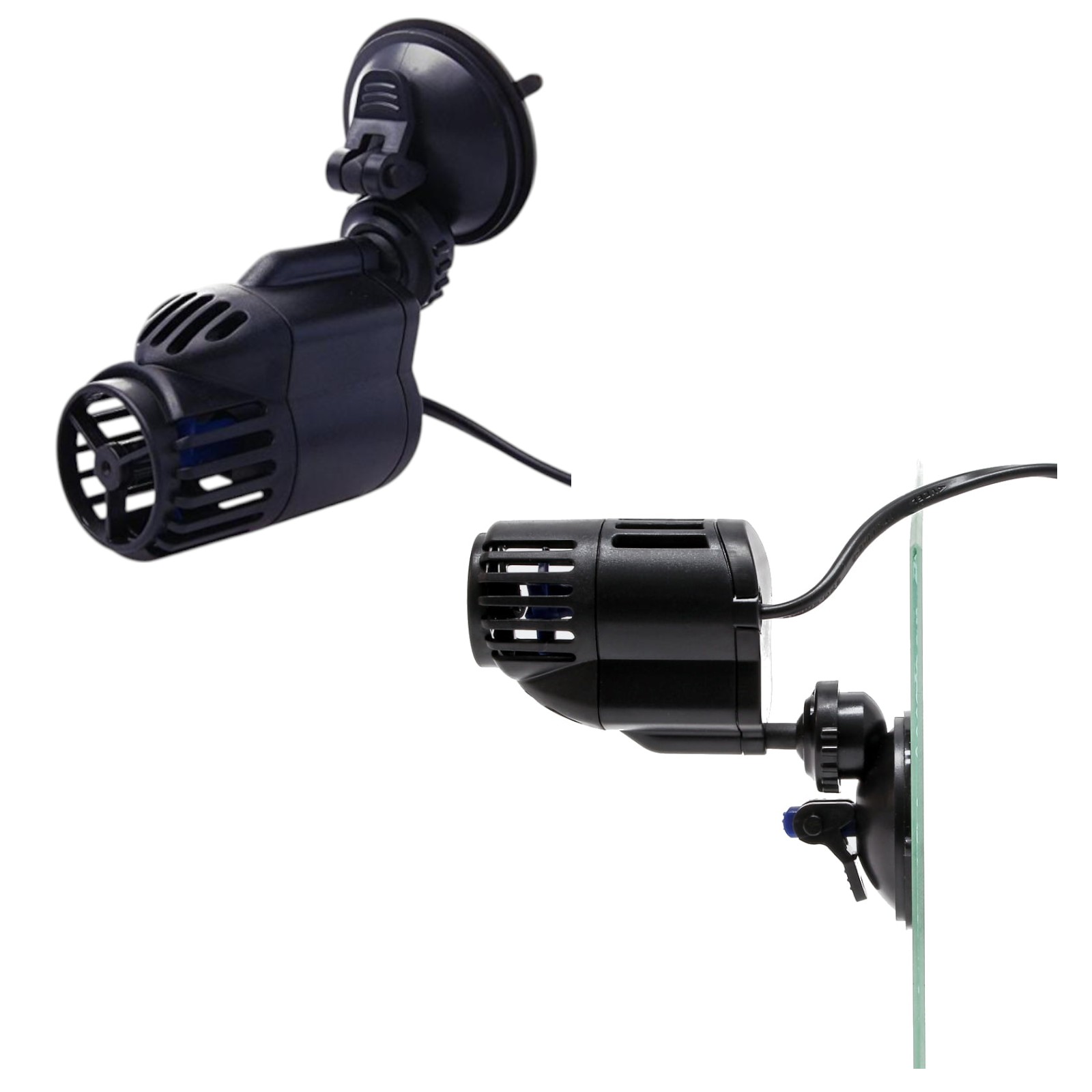 Mocowanie za pomocą przyssawek z klipsem zabezpiecza przed oderwaniem się falownika od ściany zbiornika akwariowego.