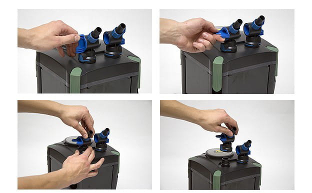 - zawory umożliwiające regulację przepływu wody (dostosowanie wielkości filtra do swoich potrzeb i wielkości zbiornika),