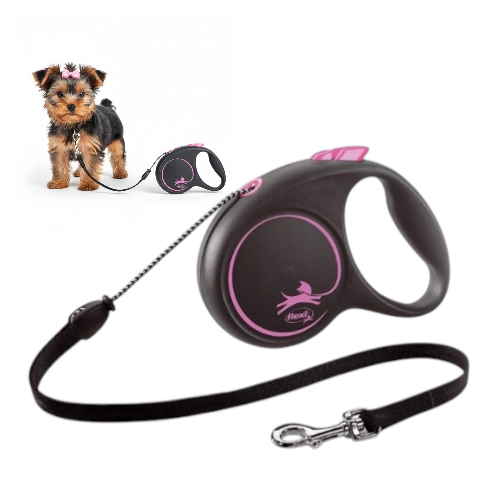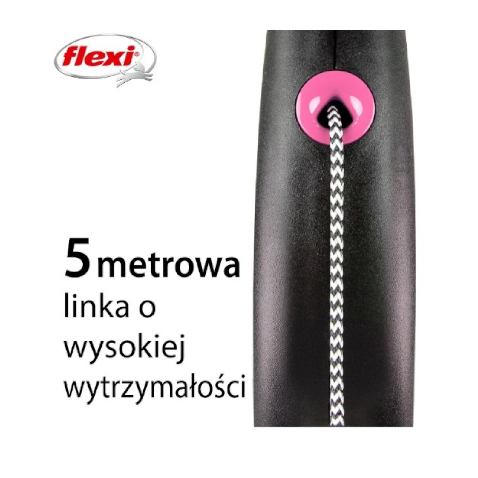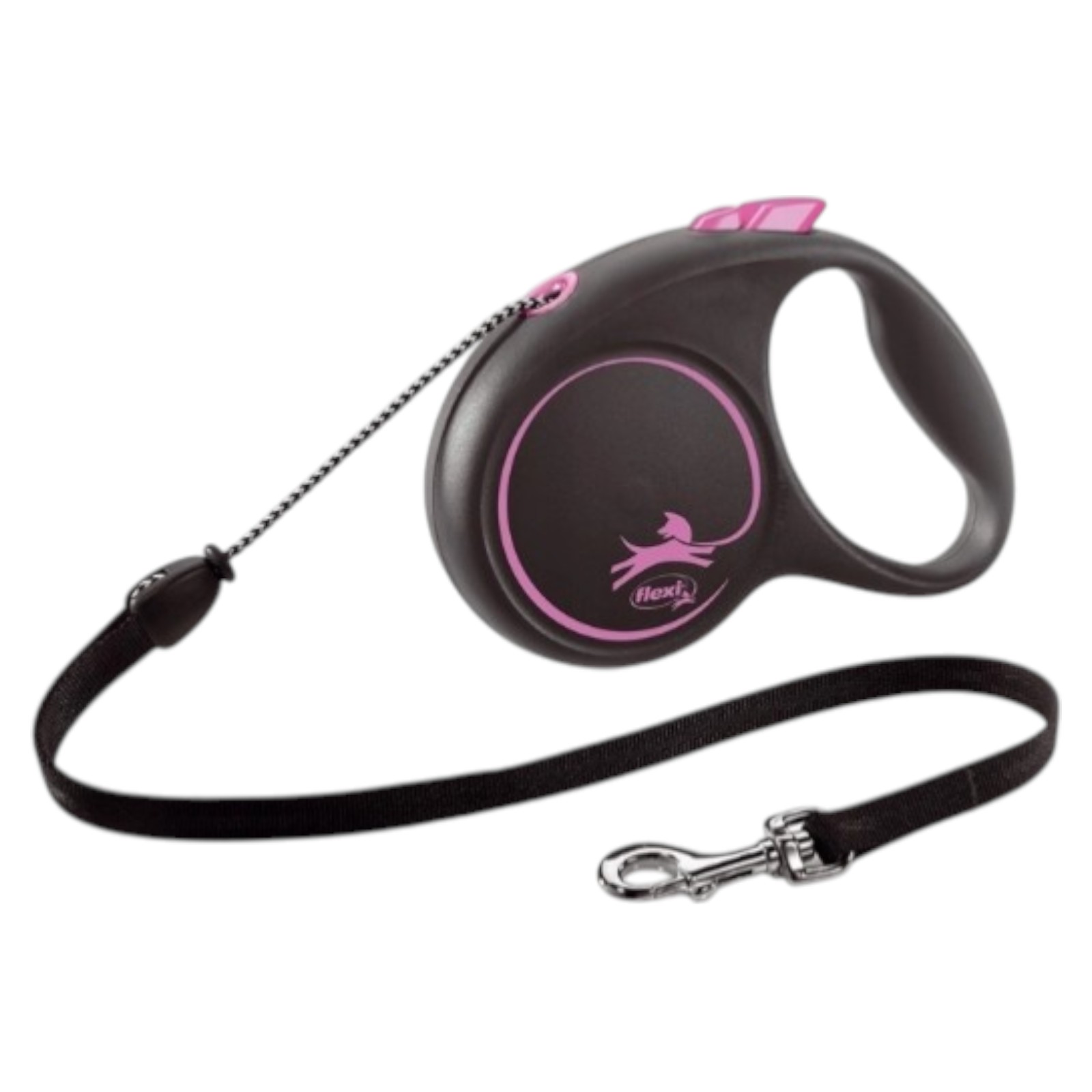 Smycz automatyczna Flexi Black Design S – Linka 5 m, do 15 kg, Kolor Różowy