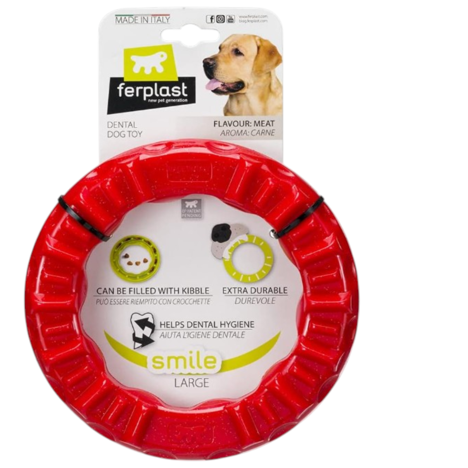 Gryzak Kółko Ferplast Smile Ring L Czerwony Zabawka Na Smaczki Dla Psa Czyści Zęby