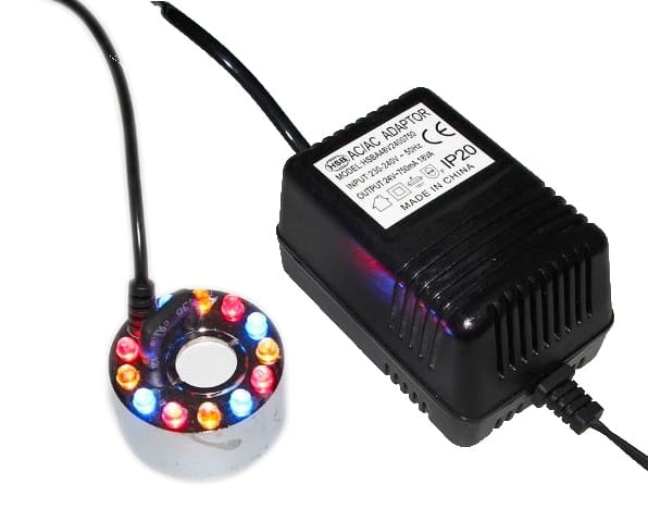 Zamgławiacz ultradźwiękowy do oczka wodnego, fontanny, kaskady, itp Zamgławiacz ultradźwiękowy wielokolorowy diodami LED (ultradźwiękowy generator pary wodnej) do fontann, aranżacji, dekoracji itp.