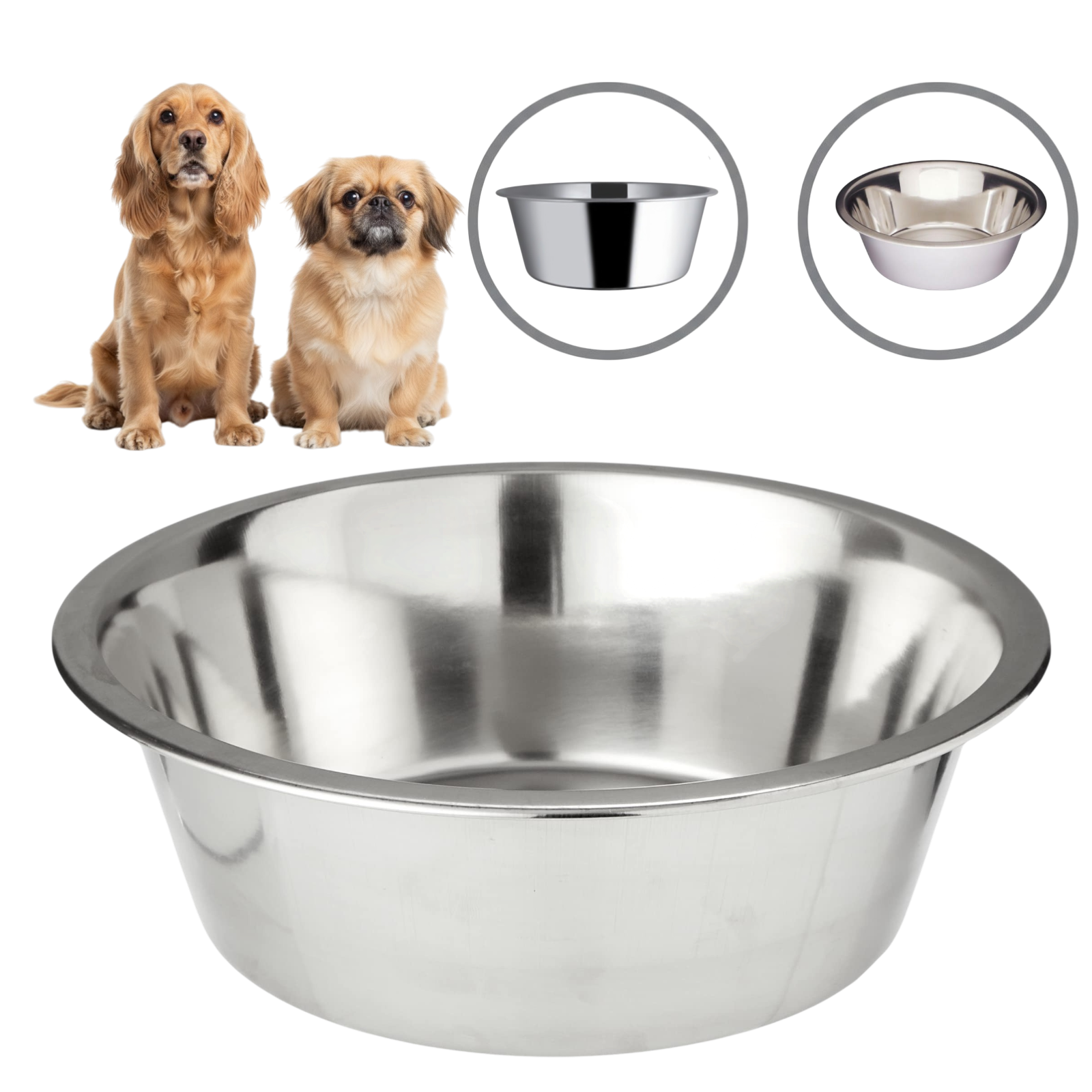 Klasyczna miska ze stali nierdzewnej o błyszczącym wykończeniu.