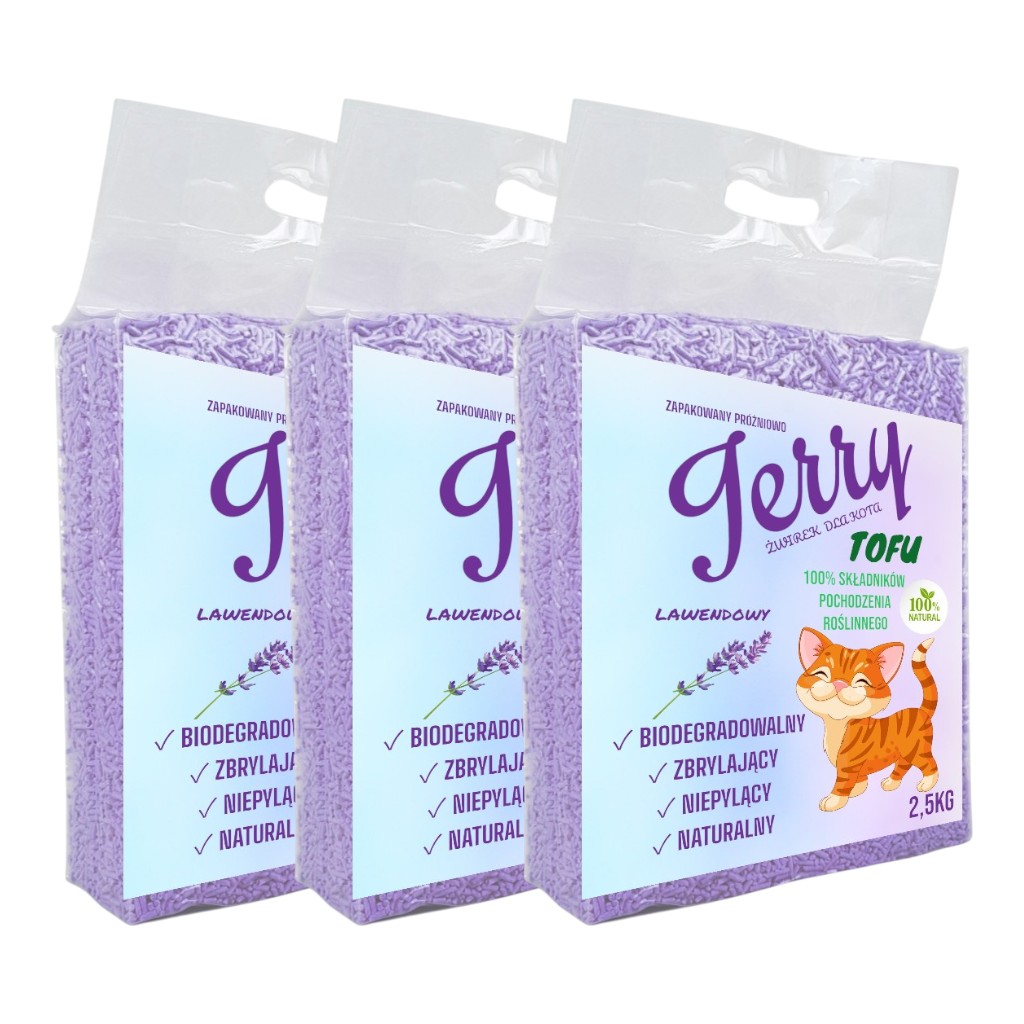 Jerry TOFU Ekologiczny Zbrylający Żwirek Żwir dla Kota Wydajny LAWENDA PAKIET 6x2,5kg