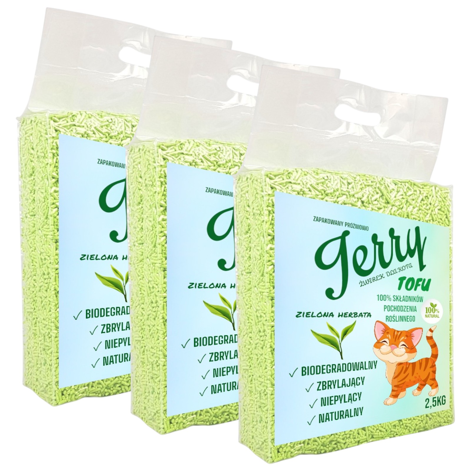Jerry TOFU Ekologiczny Zbrylający Żwirek Żwir dla Kota Wydajny ZIELONA HERBATA 2,5kg