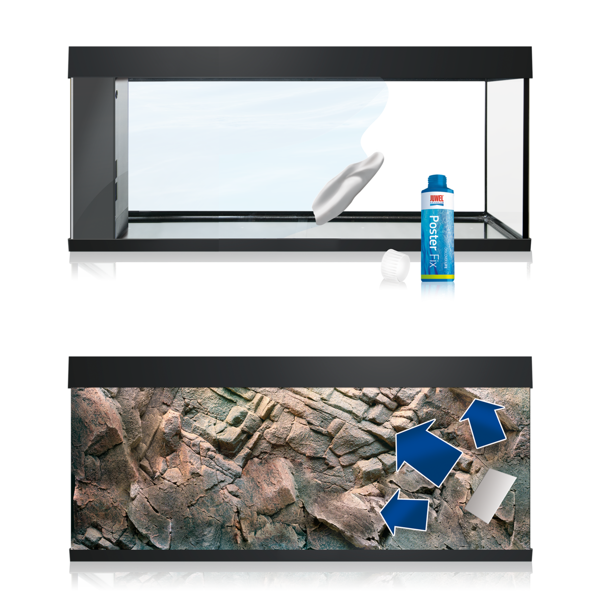 JUWEL Poster Fix zapewnia montaż fototapety w Twoim akwarium bez pęcherzyków powietrza. Poster Fix zapobiega nieatrakcyjnemu załamaniu światła, zwiększając w ten sposób kolory i strukturę motywu. Do stosowania na zewnętrznej stronie zbiornika.