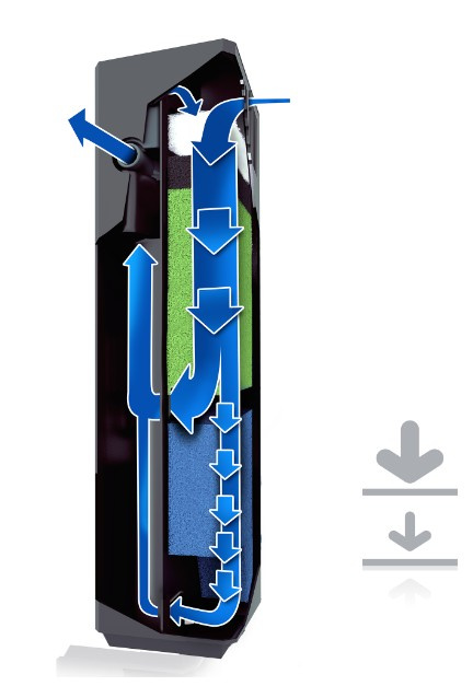 - Pompa jest tak skonstruowana pod kątem wydajności, że zagwarantowane jest optymalne filtrowanie biologiczne dzięki odpowiedniemu przepływowi przez materiał filtrujący.