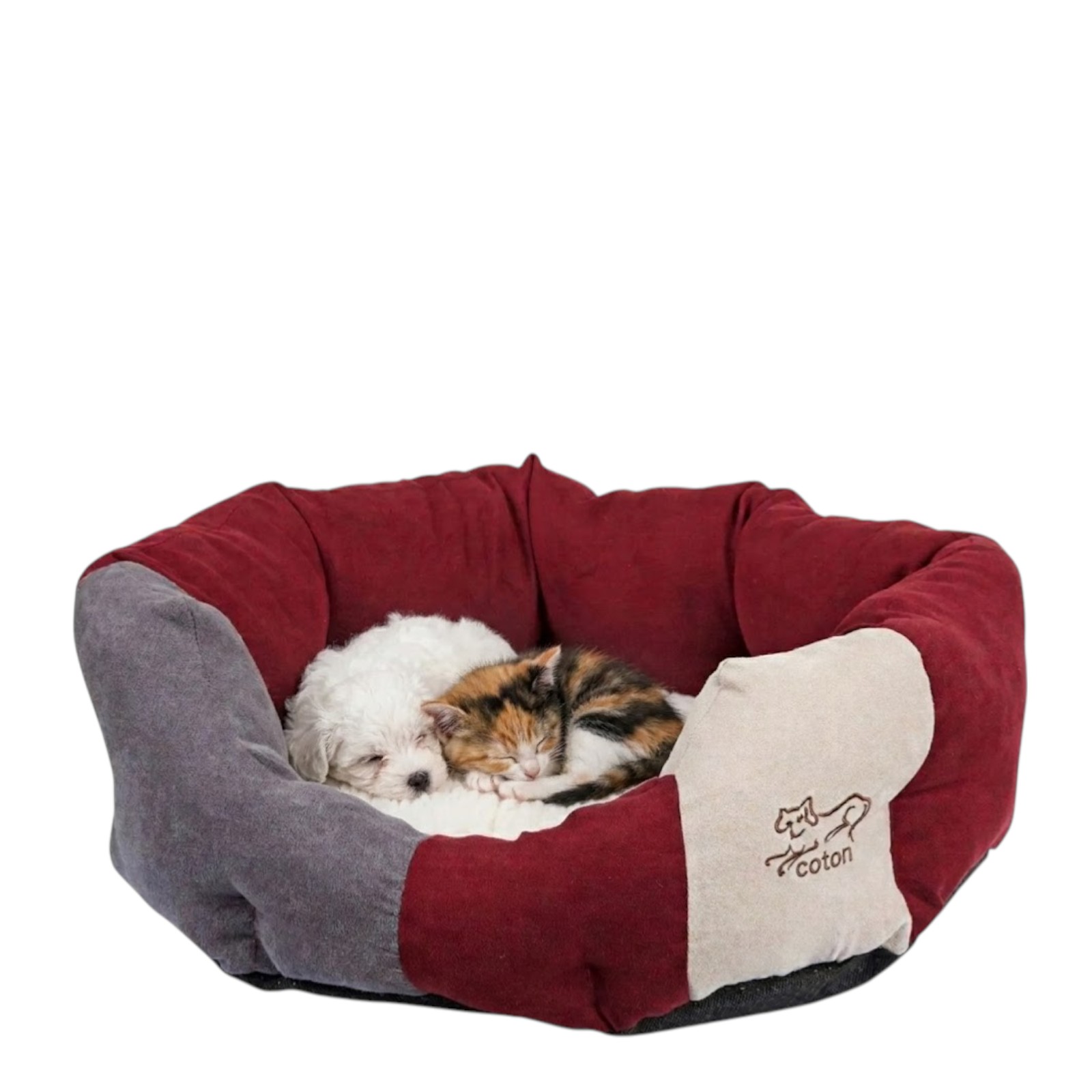 System Dual-Comfort (Welur Premium): Dwustronna poduszka wykonana z miękkiego weluru pozwala na szybką zmianę aranżacji i odczuć dotykowych pupila. Jedna strona oferuje aksamitną gładkość, druga zaś klasyczną strukturę, co ułatwia dostosowanie legowiska do codziennych preferencji zwierzaka.