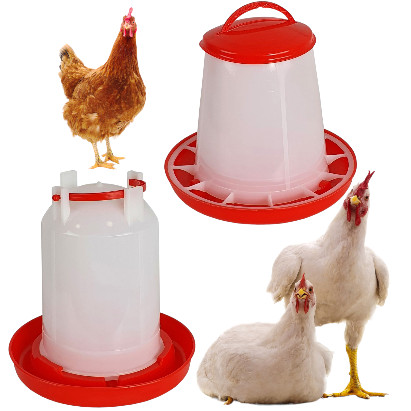 Poidło oraz karmnik zapewni stały dostęp do wody i paszy dla wszystkich małyh przedstawicieli gatunków drobiu, np. kurcząt, piskląt i ptaków ozdobnych.
