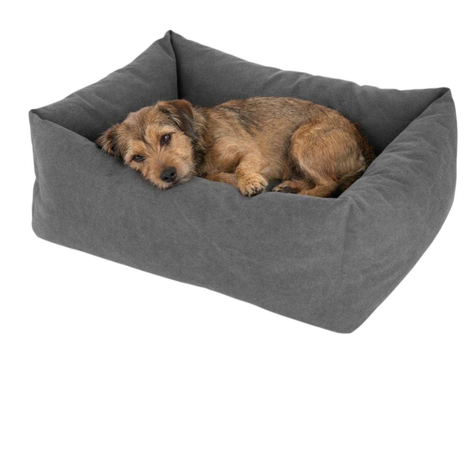 Ergonomiczne burty: Podwyższone brzegi działają jak naturalny izolator od przeciągów oraz dają psu możliwość wygodnego ułożenia głowy, co sprzyja całkowitemu rozluźnieniu mięśni.