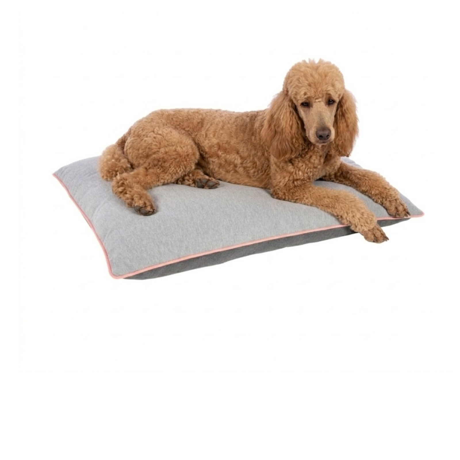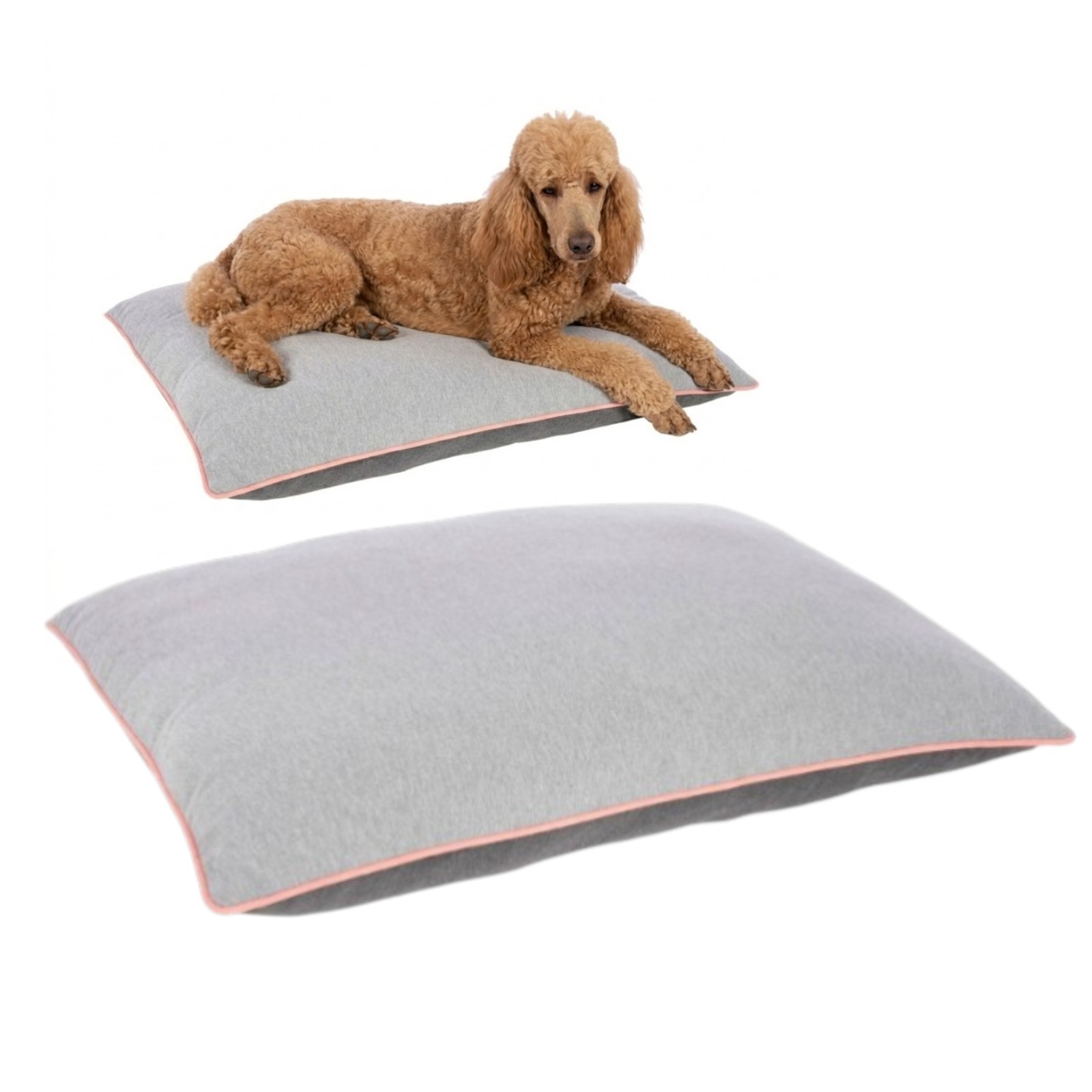 Materac Kodiak o wymiarach 110 x 90 cm to potężna stacja wypoczynkowa, która z łatwością pomieści owczarki niemieckie, labradory czy dogi. Jego nowoczesna konstrukcja opiera się na prostokątnej, stabilnej bryle, która idealnie wypełnia kąty pomieszczeń lub klatki kennelowe typu XL. Subtelna kolorystyka sprawia, że legowisko staje się eleganckim elementem wyposażenia salonu, a nie tylko akcesorium dla zwierząt.