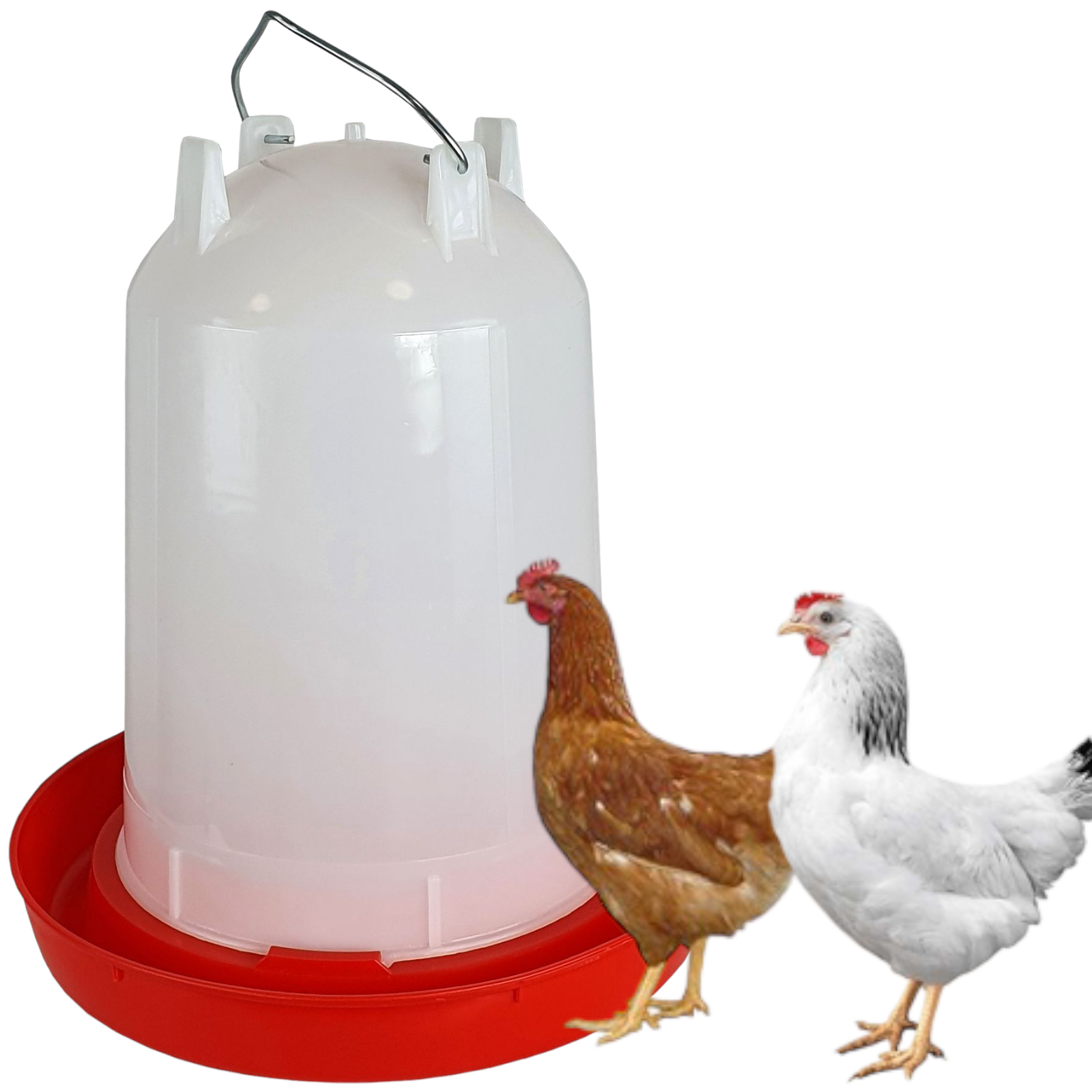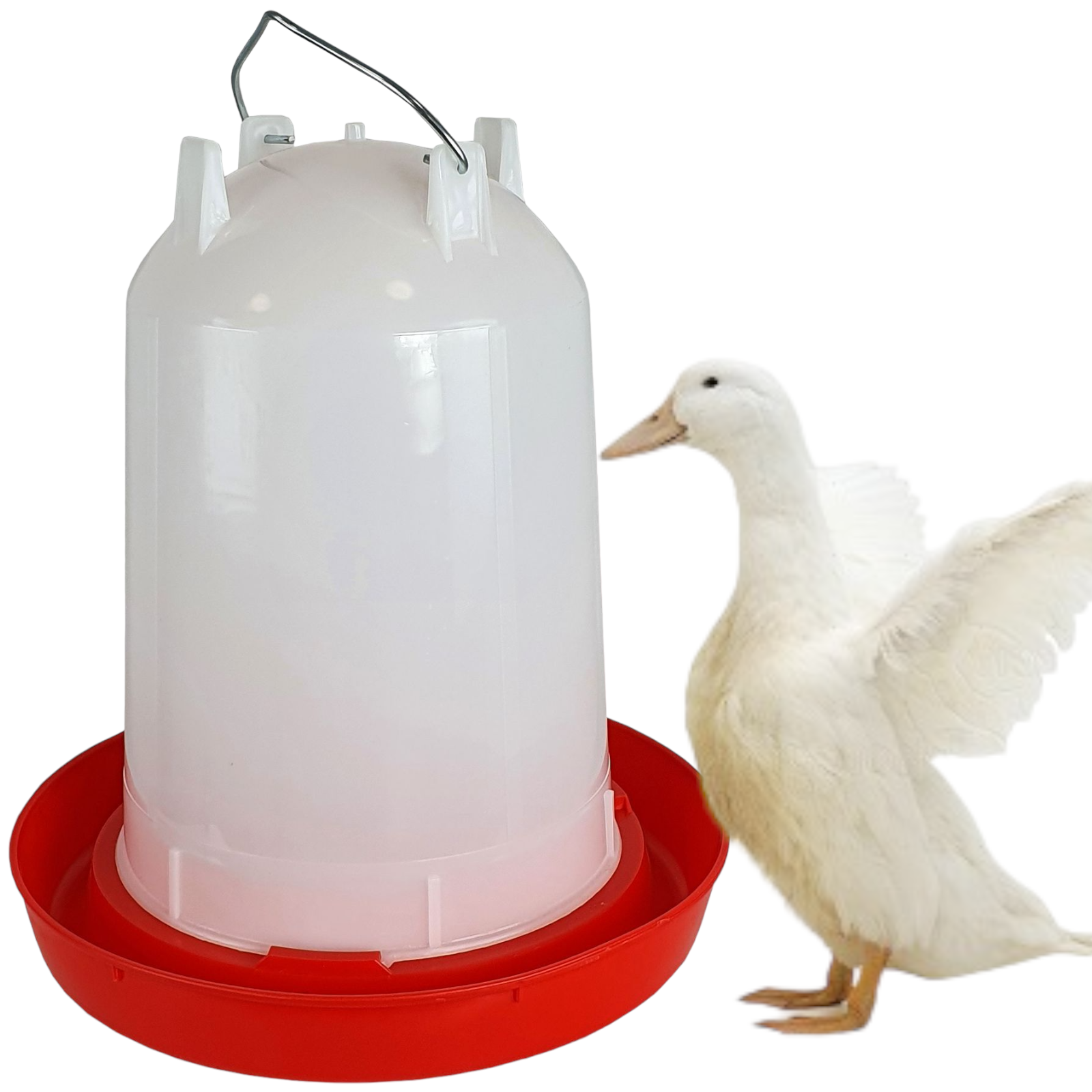 Poidło zapewni stały dostęp do wody dla wszystkich przedstawicieli gatunków drobiu, np. kurczków, kaczek, gęsi i ptaków ozdobnych.