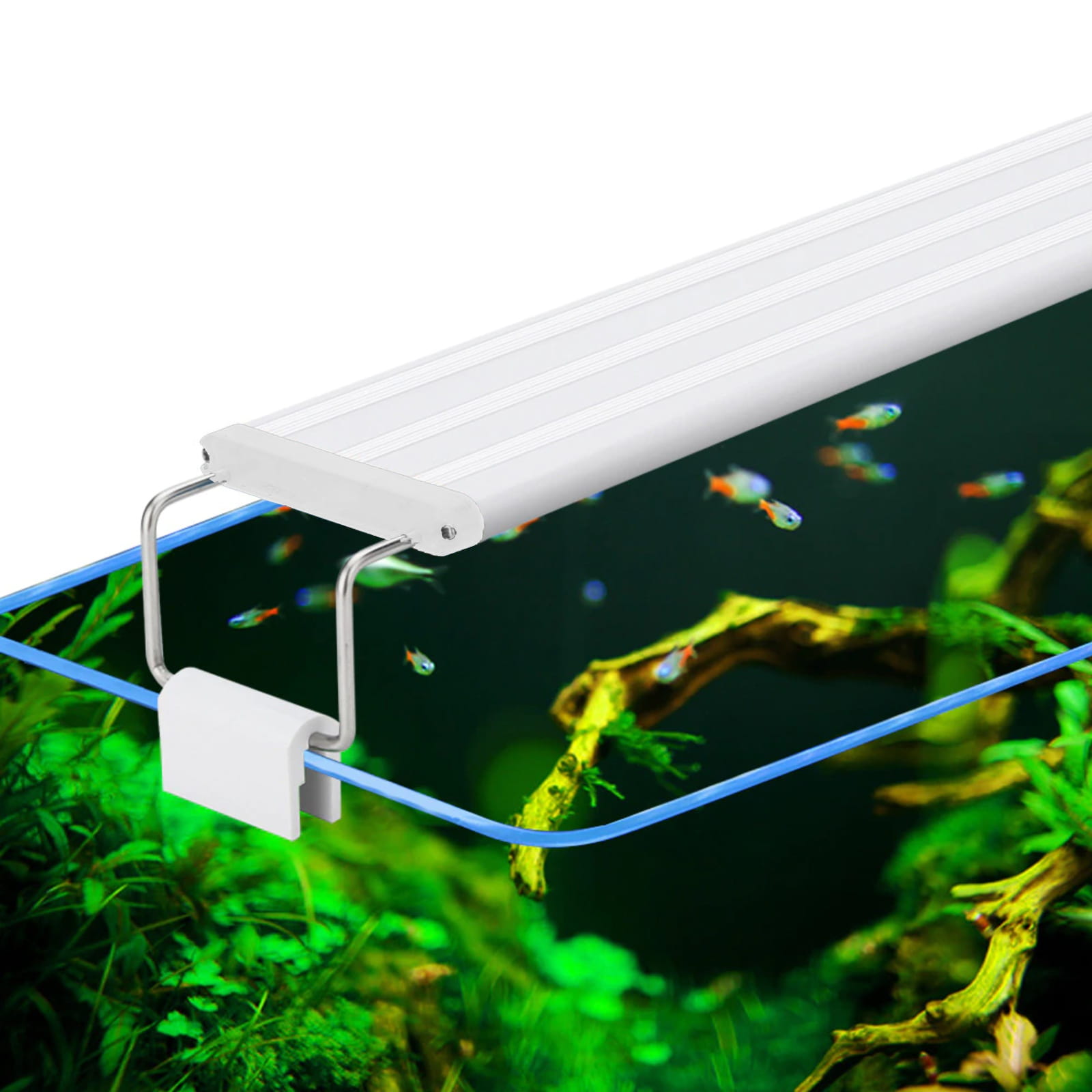 Białe diody generują barwę o temperaturze od 6500K, 7500K do 10000K. Światło to doskonale wpływa na fotosyntezę roślin wspierając ich zdrowy i bujny wzrost. Dodatkowo, lampa została wyposażona w diody niebieskie, która nadają żywych kolorów roślinom i wybarwiają ryby.