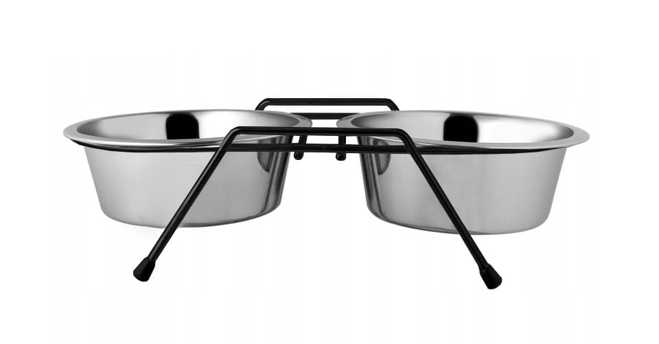 Podwójna miska metalowa na niskim stojaku doskonale nadaje się dla psów i kotów każdej wielkości i rasy.