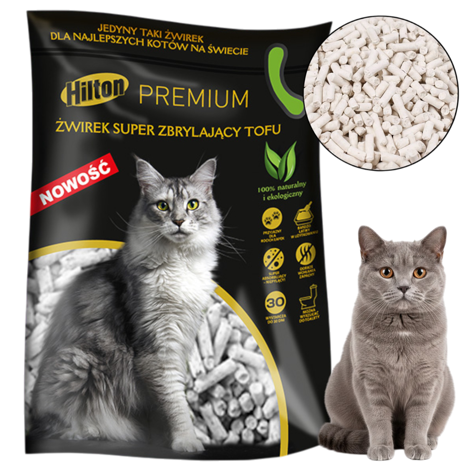 Naturalny Super Zbrylający Żwirek Żwir dla Kota Hilton TOFU 2,5kg