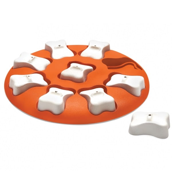 Będzie musiał węszyć i zdejmować łapami lub pyszczkiem kosteczki skrywające łakocie. Twój czworonóg szybko nauczy się odnajdywać ukryte skarby!