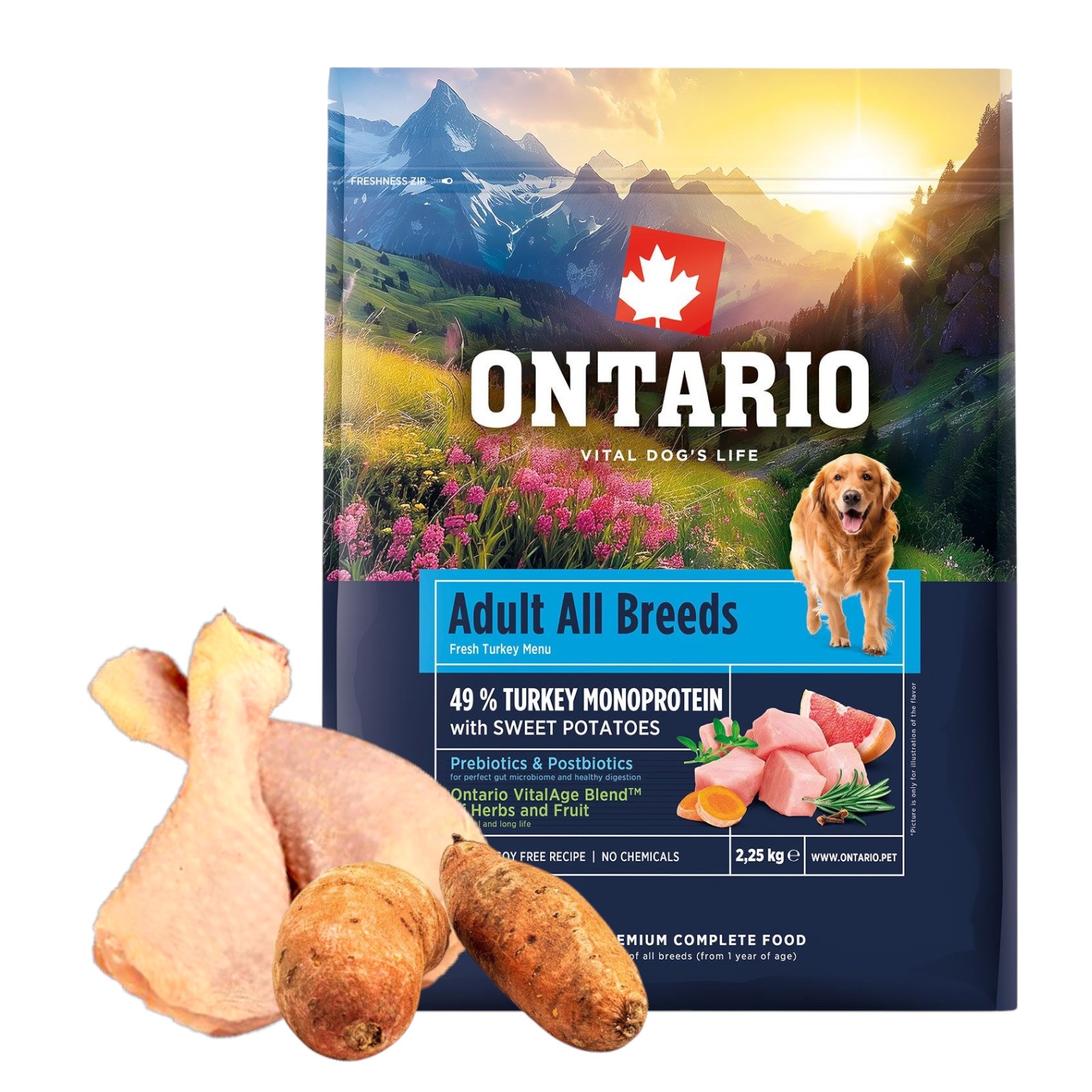 ONTARIO ADULT ALL BREADS MONO TURKEY&POTATOES 2,25KG Karma Monoproteinowa dla Dorosłych Psów Wszystkich Ras z Indykiem i Słodkim Ziemniakiem