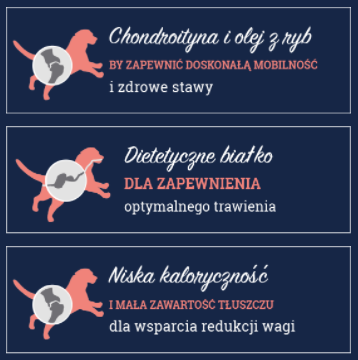 • składniki chroniące chrząstki oraz tłuszcz z ryb dla zapewnienia doskonałej ruchomości i zdrowych stawów