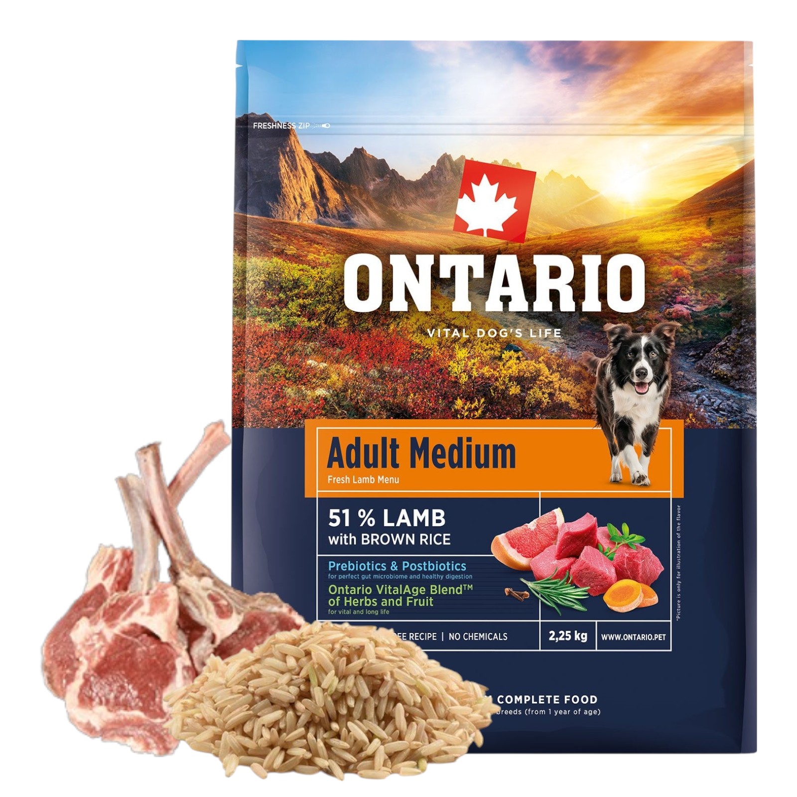 ONTARIO ADULT MEDIUM LAMB&BROWN RICE 2,25KG Karma dla Dorosłych Psów Średnich Ras z Jagnięciną i Ryżem Brązowym