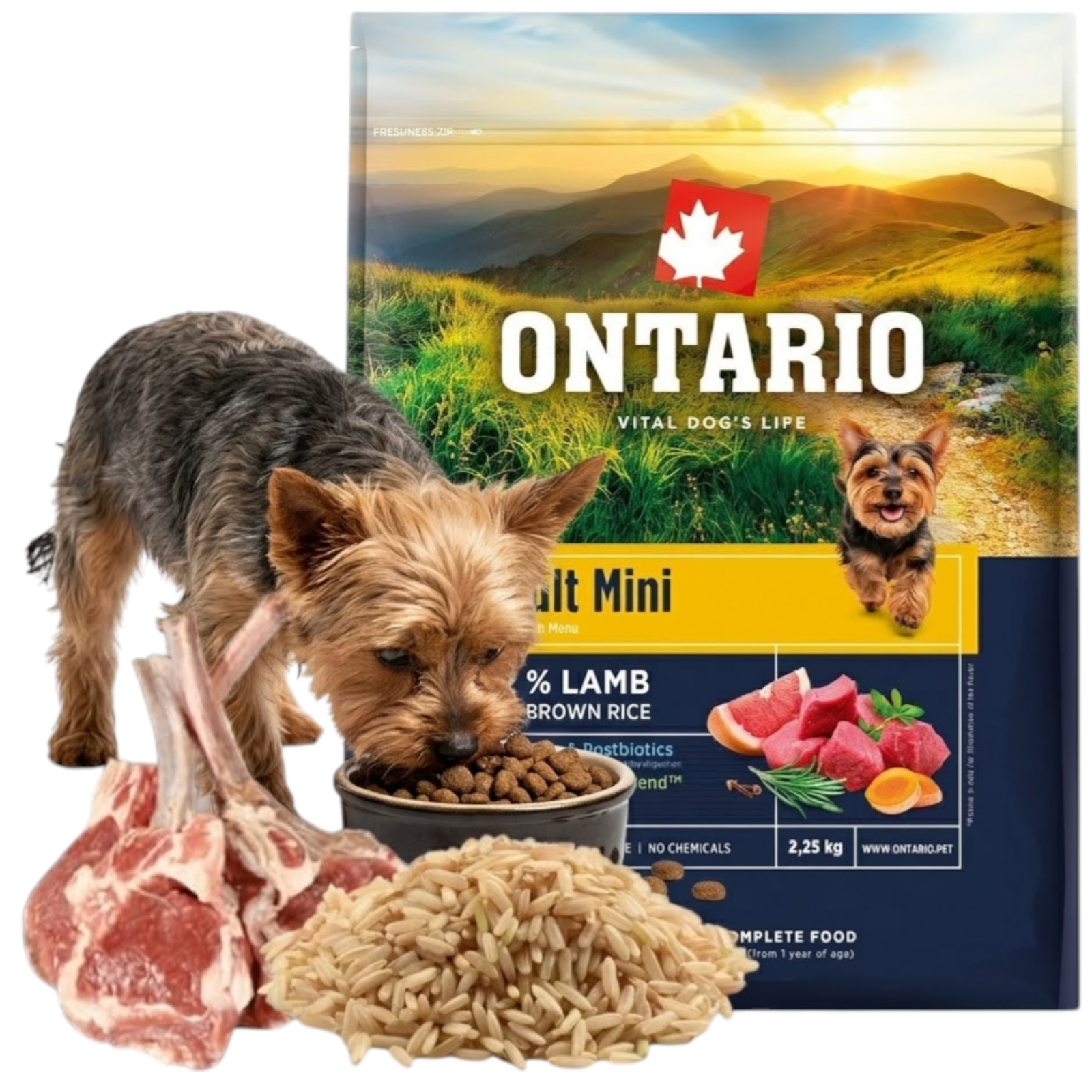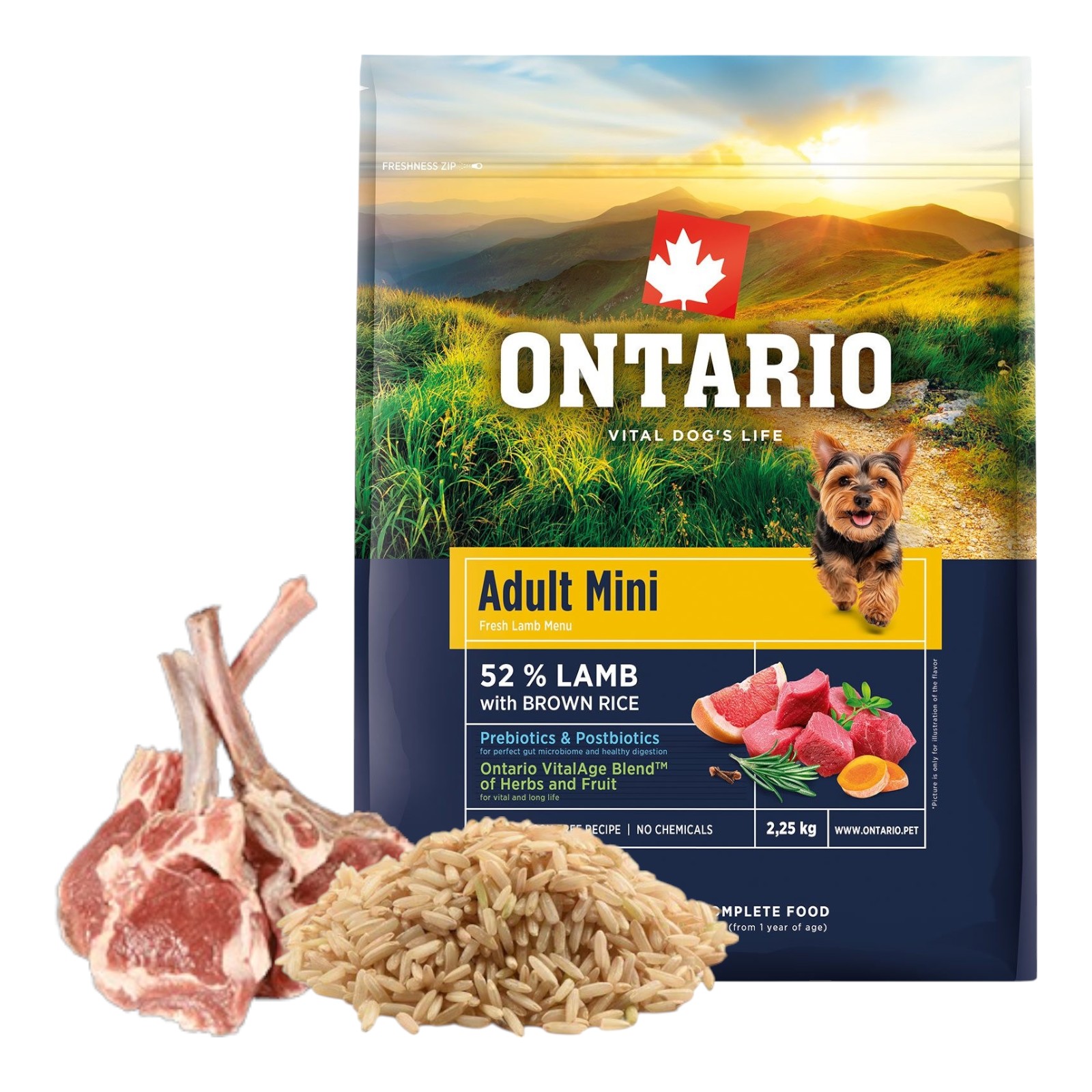 ONTARIO ADULT MINI LAMB&BROWN RICE 2,25KG Karma dla Dorosłych Psów Małych Ras z Jagnięciną i Ryżem Brązowym