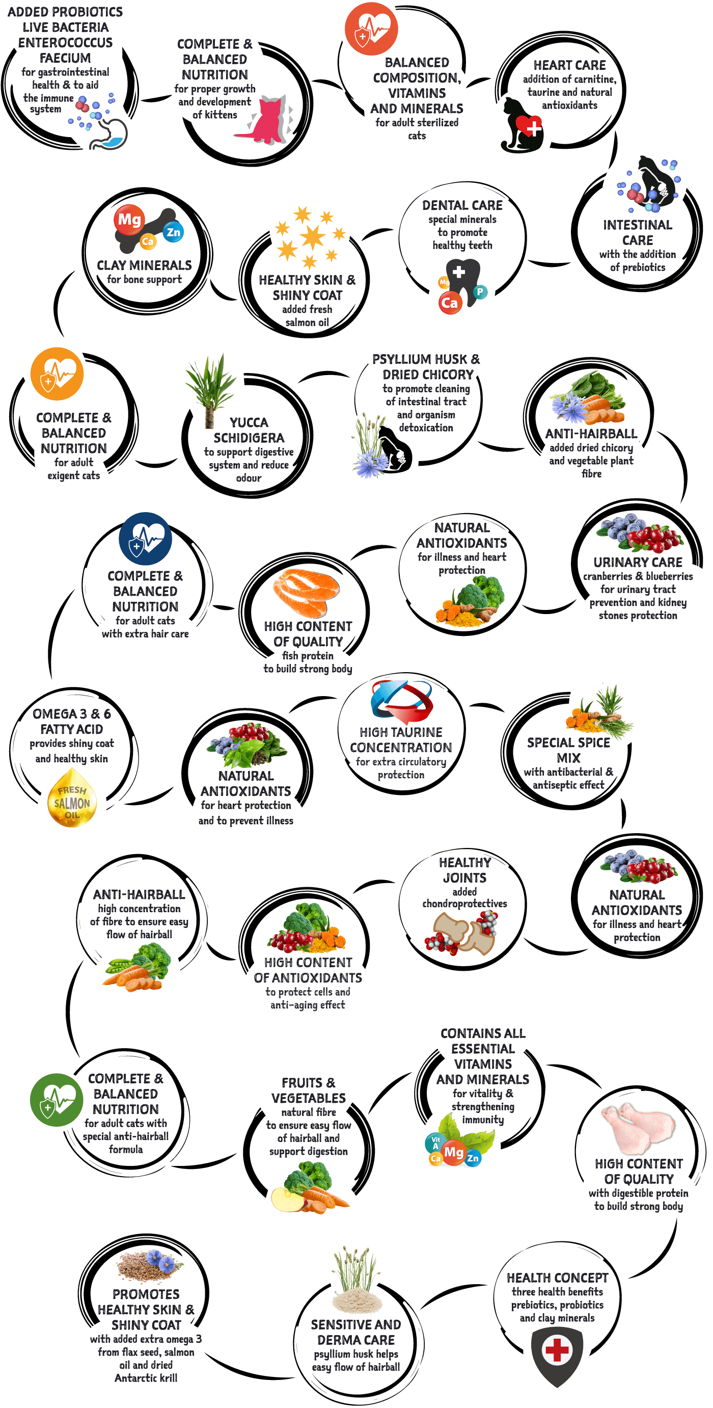 Pełnowartościowy posiłek skomponowany specjalnie z myślą o kotach mających problemy z gromadzeniem się kul włosowych w przewodzie pokarmowym. Jej receptura zawiera składniki polepszające perystaltykę jelit. Jest ona wzbogacona o formułę odkłaczająca, zapobiegająca powstawaniu kłaczków i eliminację tych już powstałych z żołądka i jelit.