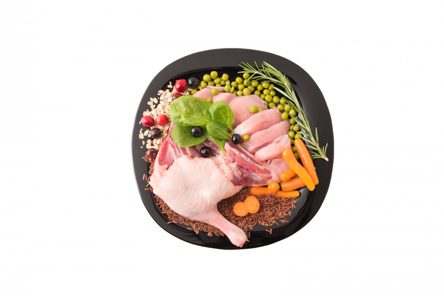 odwodniona kaczka 16%, świeży kurczak 15%, odwodniony kurczak 10%, owies zwyczajny 10%, groch 10%, ryż brązowy 10%, tłuszcz z kurczaka 5,5%, hydrolizowane białko zwierzęce 5%, suszona cykoria (naturalne źródło fruktooligosacharyd [FOS] i inuliny), olej ze świeżego łososia 1%, suszona marchew, minerały, suszone jabłka, celuloza, mannooligosacharydy (MOS), suszone żurawiny, suszone jagody, suszony szpinak, suszone brokuły, łuski babki płesznik, rozmaryn, winogrona, kurkuma, cytrusy, juka schidigera.