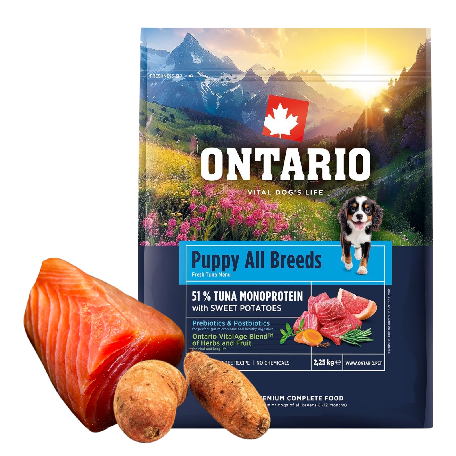ONTARIO PUPPY ALL BREADS MONO TUNA&POTATOES 2,25KG Karma Monoproteinowa dla Szczeniąt Wszystkich Ras z Tuńczykiem i Słodkim Ziemniakiem