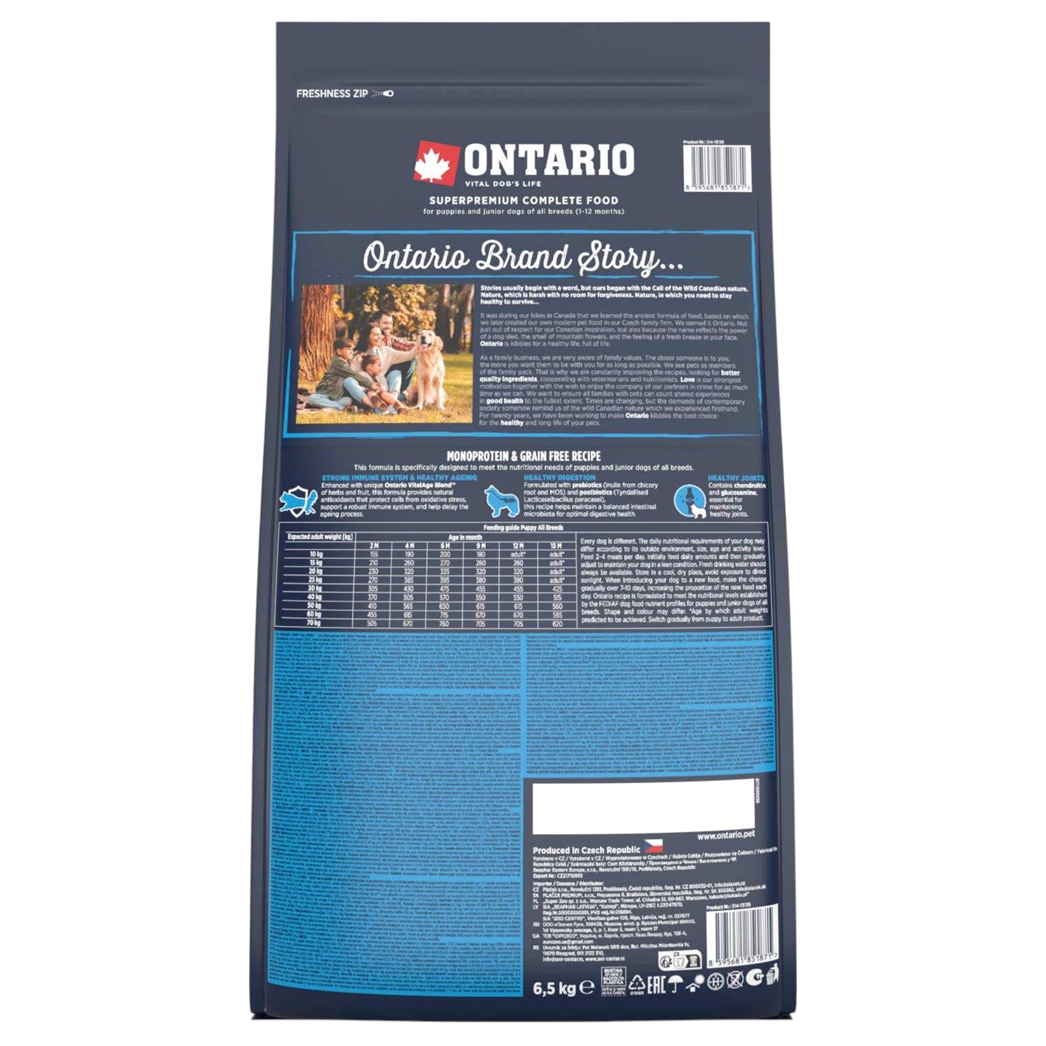 ONTARIO PUPPY ALL BREADS MONO TUNA&POTATOES 6,5KG Karma Monoproteinowa dla Szczeniąt Wszystkich Ras z Tuńczykiem i Słodkim Ziemniakiem