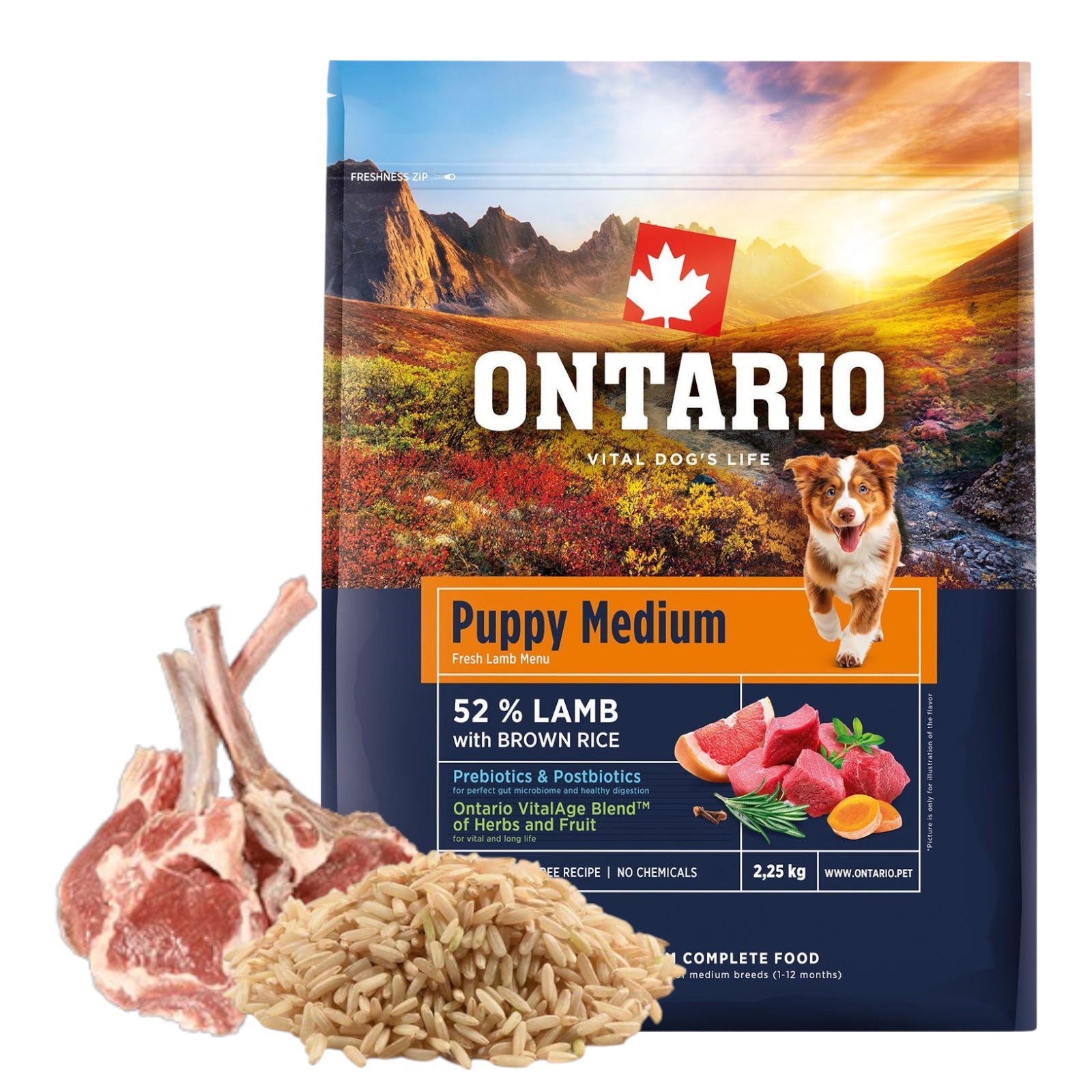ONTARIO PUPPY MEDIUM LAMB&BROWN RICE 2,25KG Karma dla Szczeniąt Średnich Ras z Jagnięciną i Ryżem Brązowym