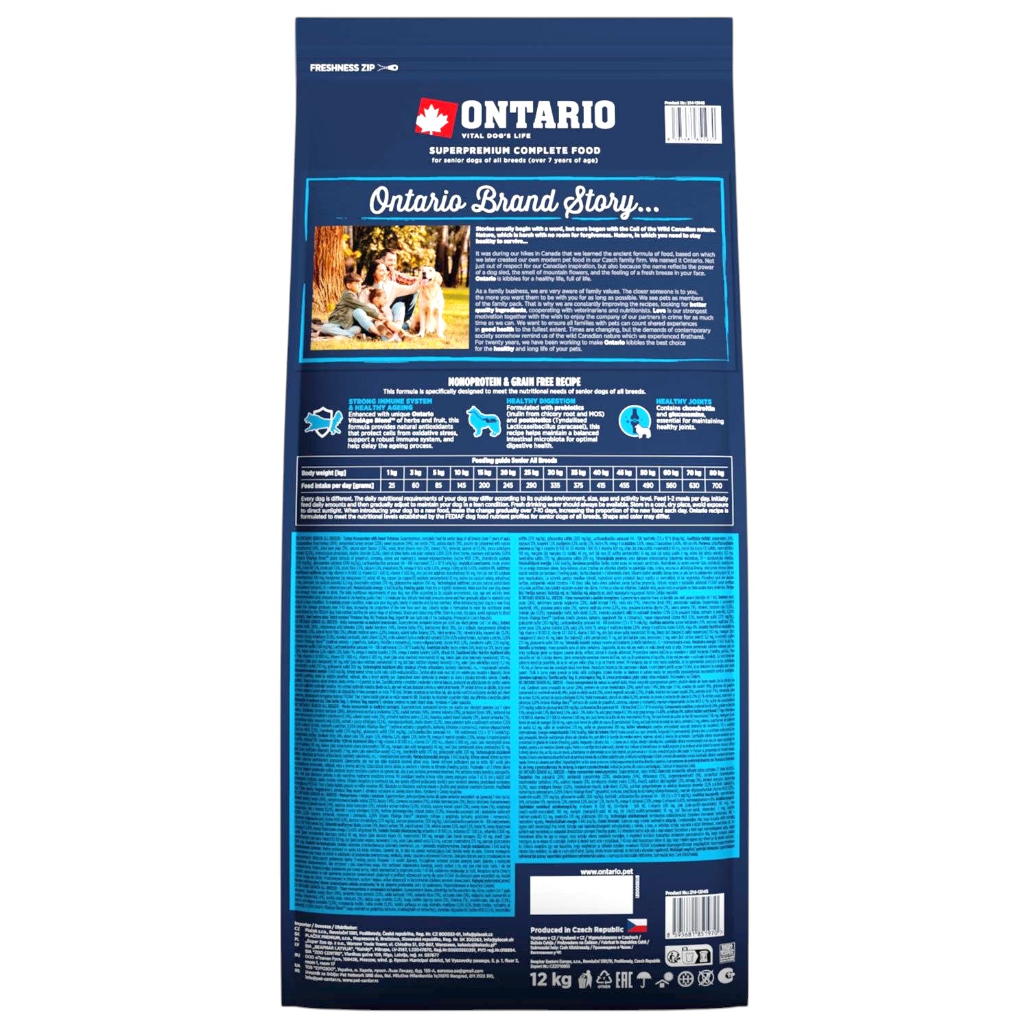 ONTARIO SENIOR ALL BREADS MONO TURKEY&POTATOES 12KG Karma Monoproteinowa dla Starszych Psów Wszystkich Ras z Indykiem i Słodkim Ziemniakiem