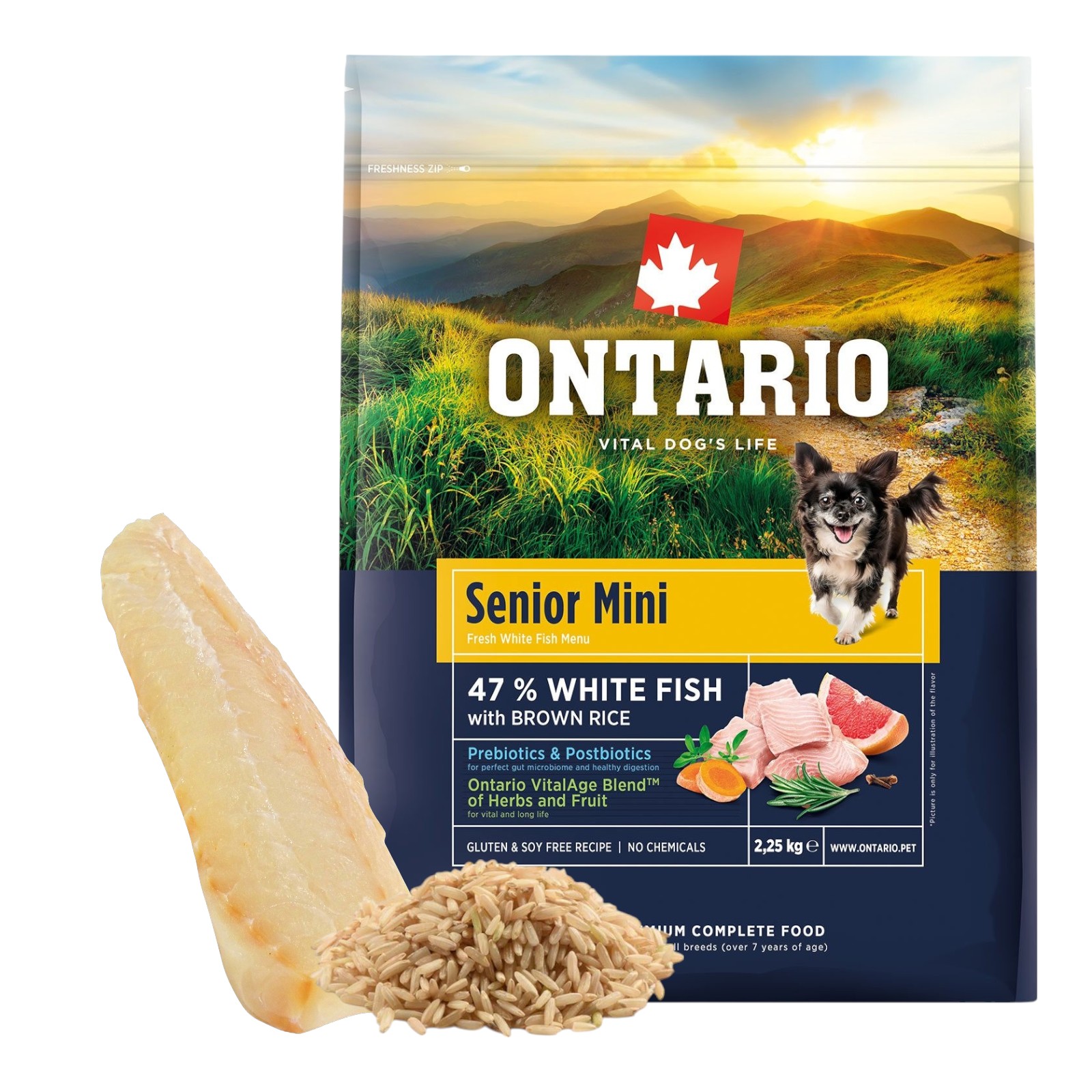ONTARIO SENIOR MINI FISH&BROWN RICE 2,25KG Karma dla Starszych Psów Małych Ras z Białą Rybą i Ryżem Brązowym
